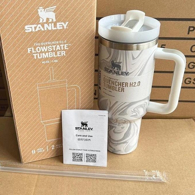 40oz Straw Tumbler with Handle Insulated Double Wall Vacuum Flask Cup Stanley Quencher Flowstate