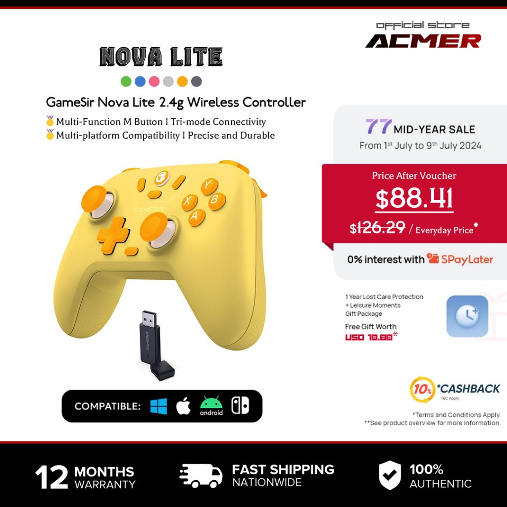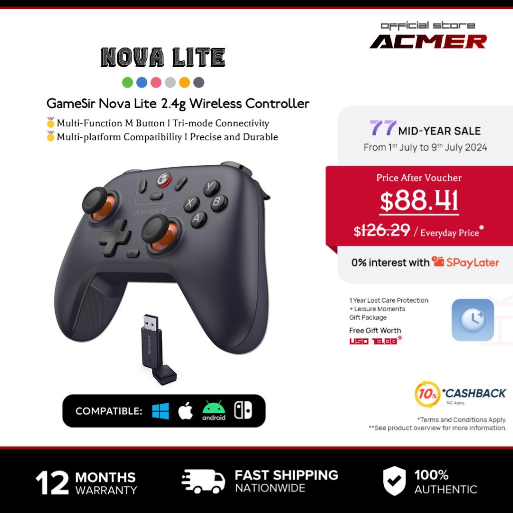 ACMER GameSir Nova Lite 2.4g Wireless Controller for Windows PC, iPhone, Android, Switch & Steam Deck, Bluetooth Controller Gamepad with Hall Effect Trigger