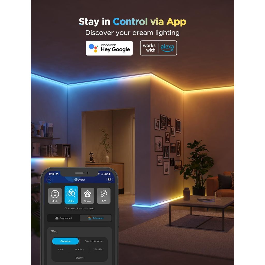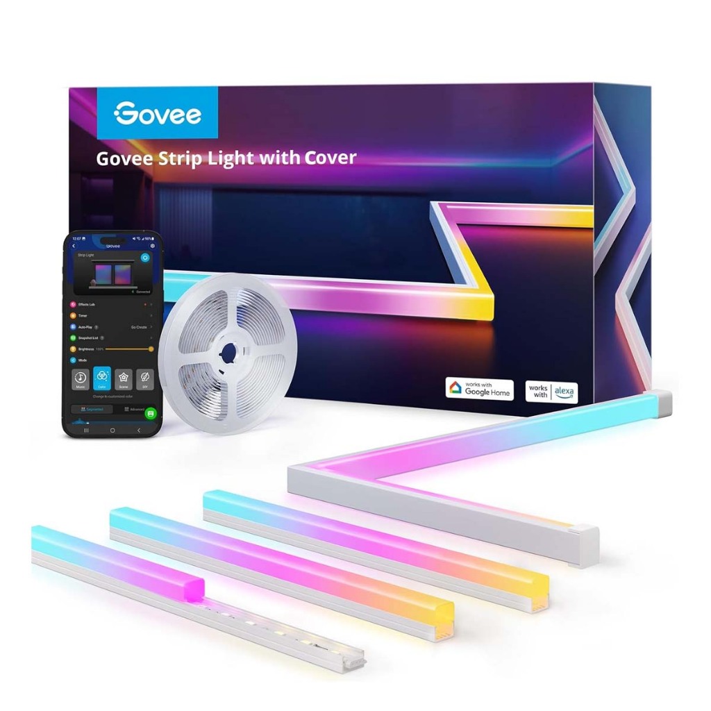 Govee RGBIC LED Strip Lights with Diffuser Smart LED Wifi Bluetooth Compatible with Alexa Google