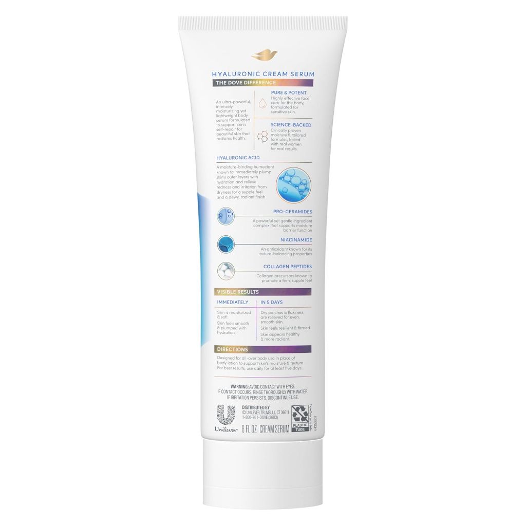 Dove Cream Serum Hyaluronic + Hydration for Extra Dry, Flaky Skin, w/ Pro-Ceramides, Niacinamide 8oz