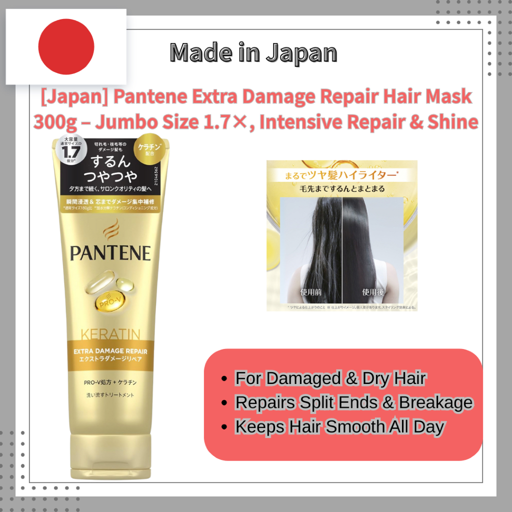 [Japan] Pantene Extra Damage Repair Hair Mask 300g – Jumbo Size 1.7×, Intensive Repair & Shine