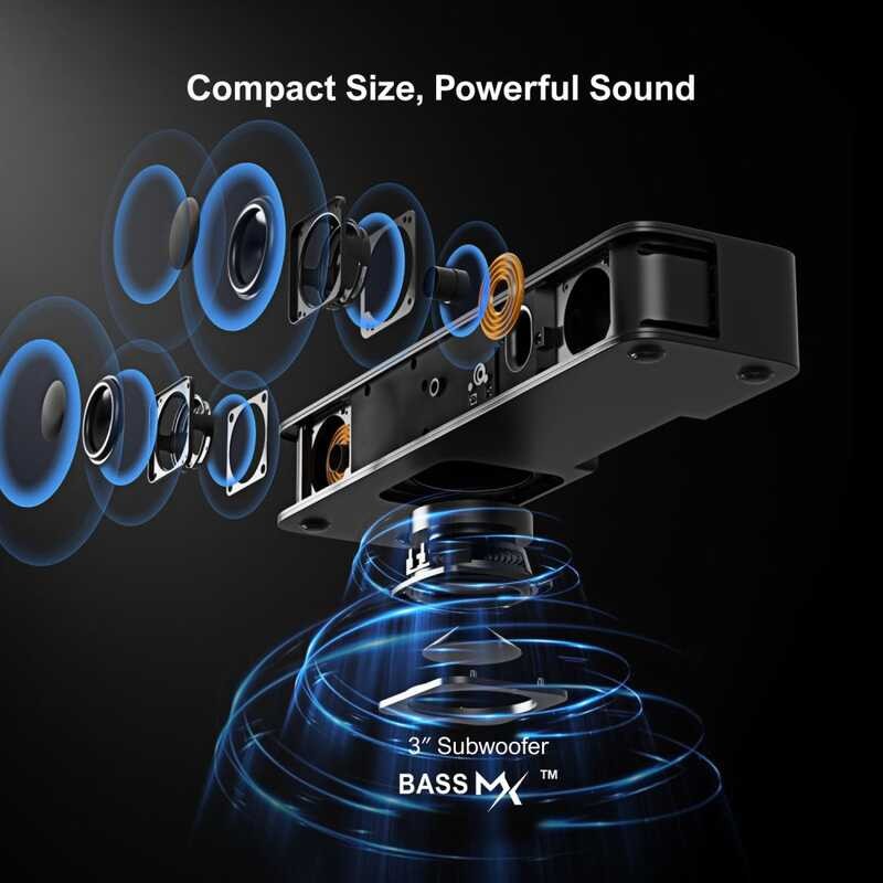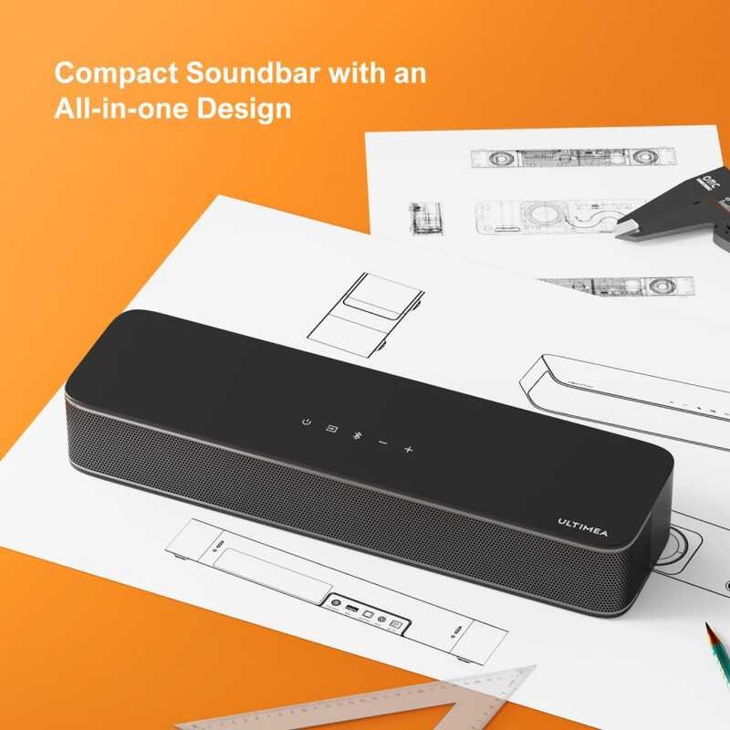 ULTIMEA Sound Bar For TV 2.1Ch All-In-One PC Soundbar Built-In Subwoofer Peak Power 120W Smart APP 2