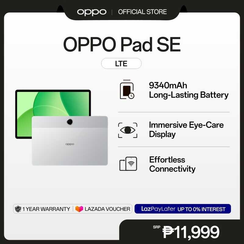 [Now Available] OPPO Pad SE LTE 9340Mah Long-Lasting Battery | Immersive Eye-Care Display Fbf