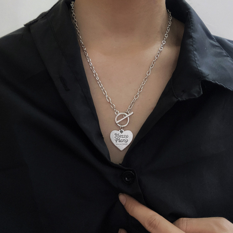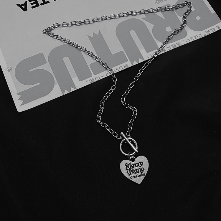 Cool Love Heart Shape Necklace English Clavicle Chain Fashion Men Hip Hop Jumping Earth Cool Necklace Men And Women Lovers Sweater Chain Fashion