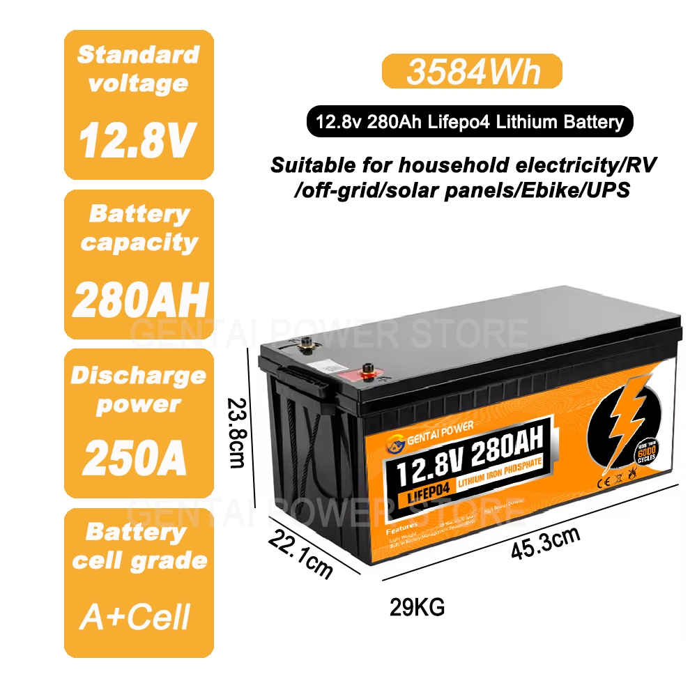 Bluetooth Lifepo4 Battery 12V100Ah/280Ah Lithium Battery 100A BMS, MegaGentai Battery Grade A Cells