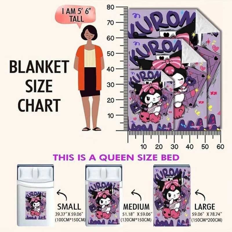 Sanrio Same Style Kuromi Anime Soft Flannel Cover Summer Thin Lunch Break Blanket 392