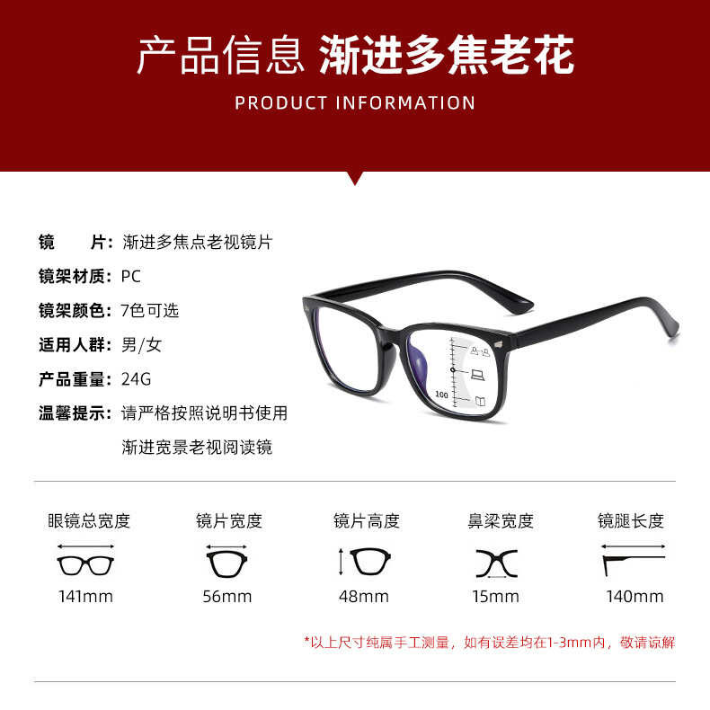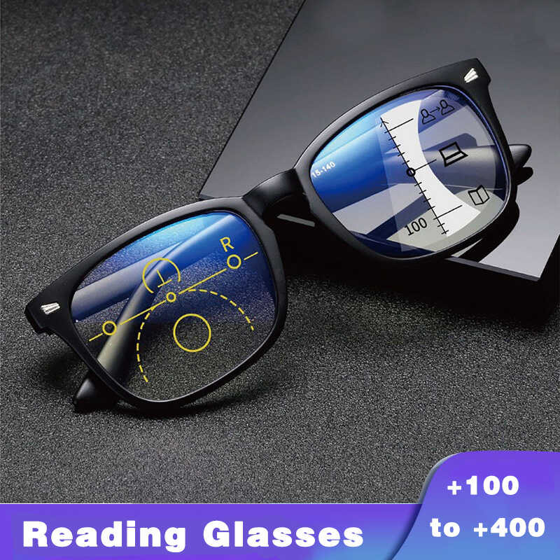 New 3 In1 Progressive Multifocal Reading Glasses Women Men Anti-Blue Eyewear With