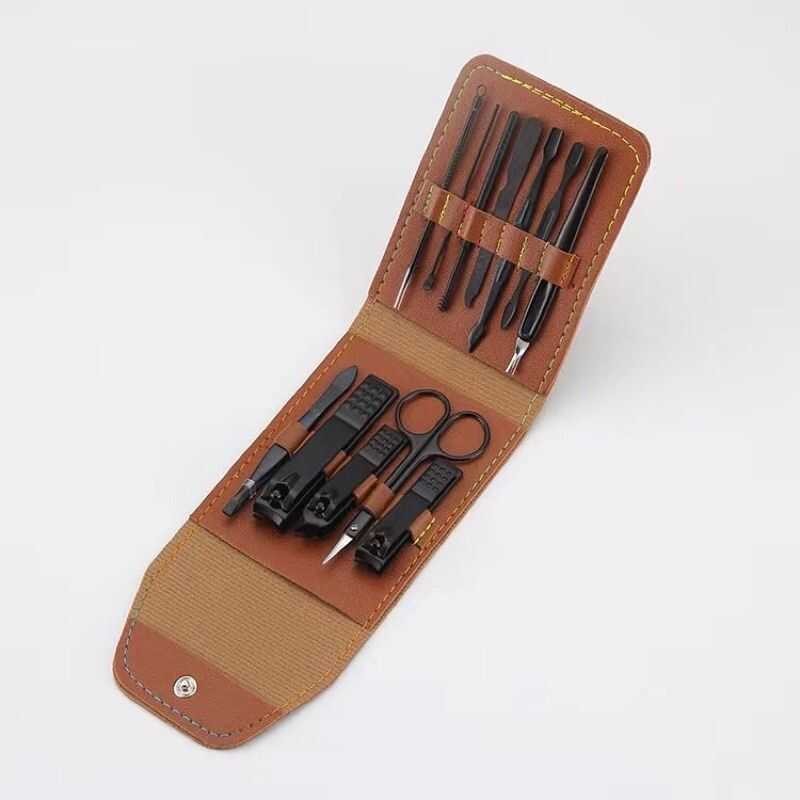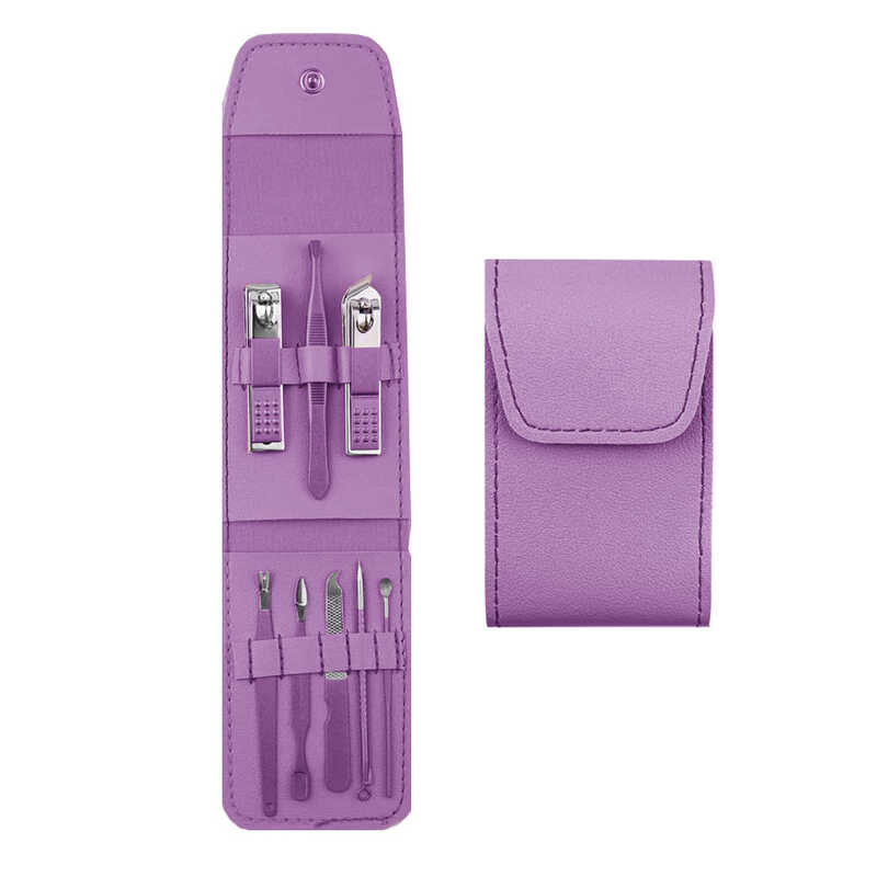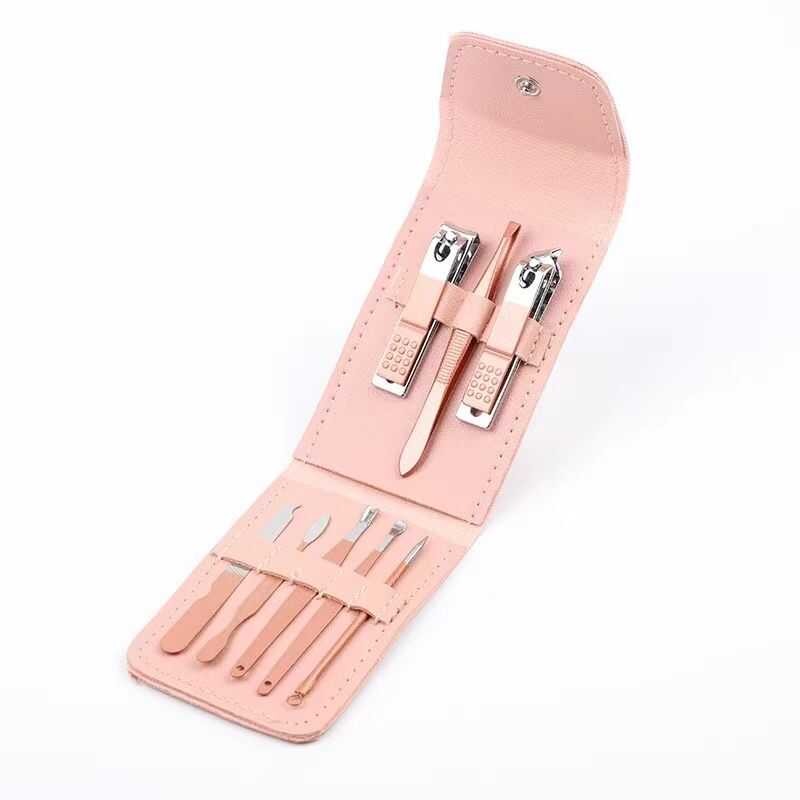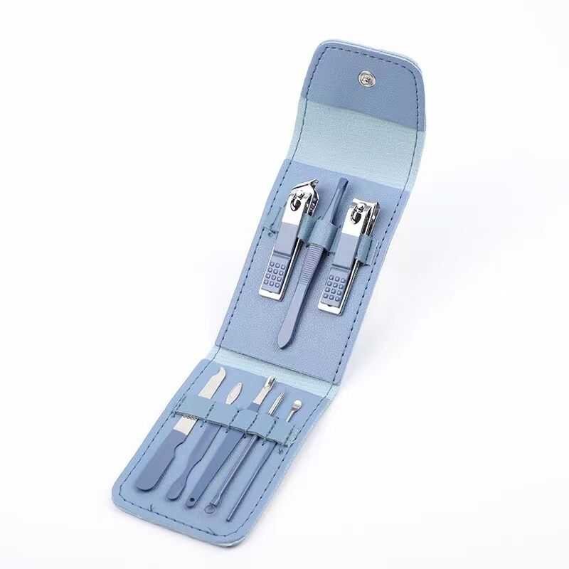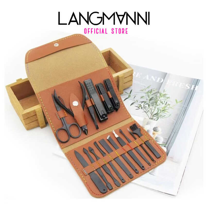 LANGMANNI 16-12-8 In 1 Pastel Color Stainless Nail Clipper Manicure Set Leather Case Pouch Nail Care