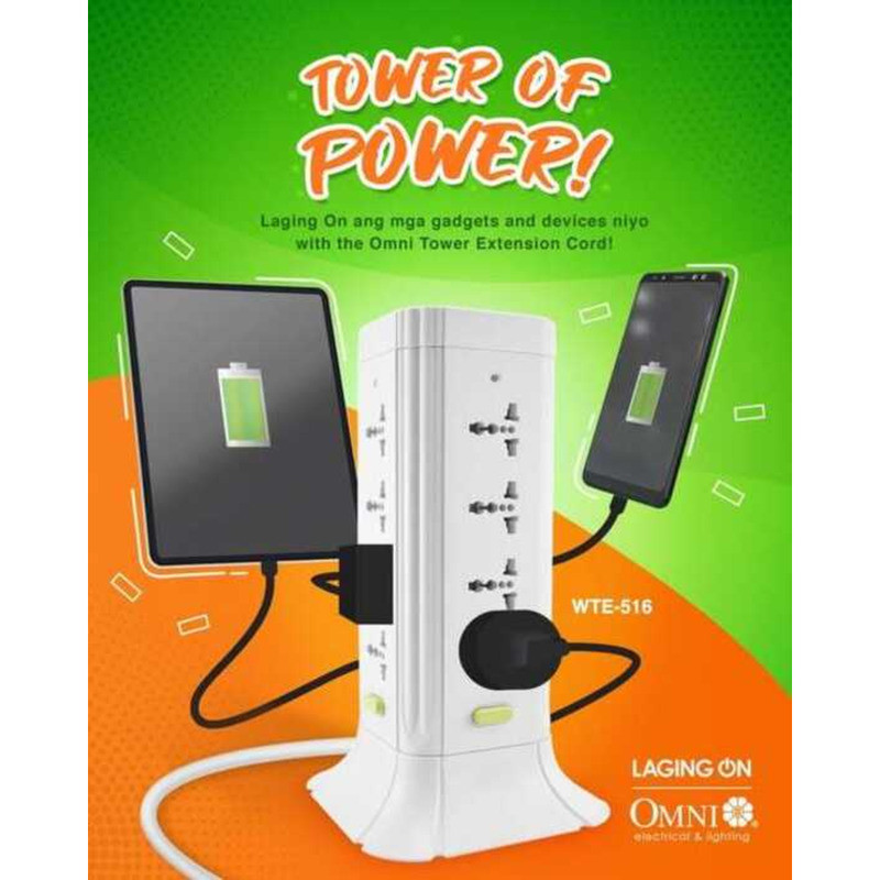 OMNI Universal Tower Extension Cord Power Strip 12 Gang 16-Gang WTE 512 / Wte-516 F87