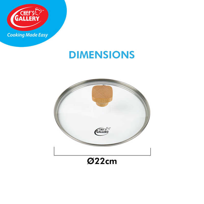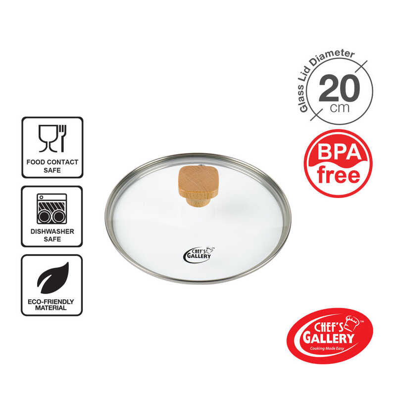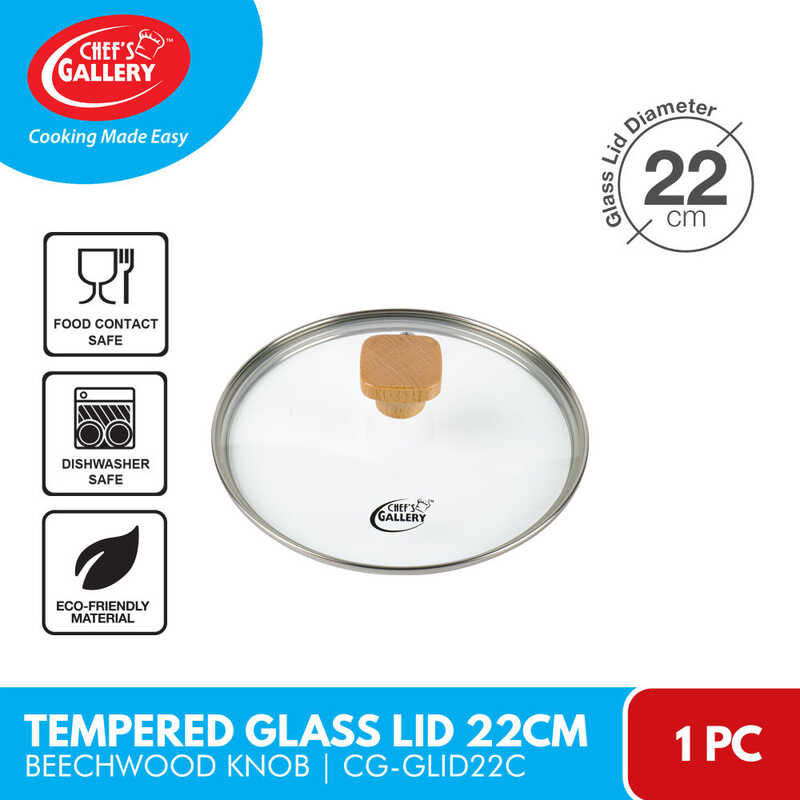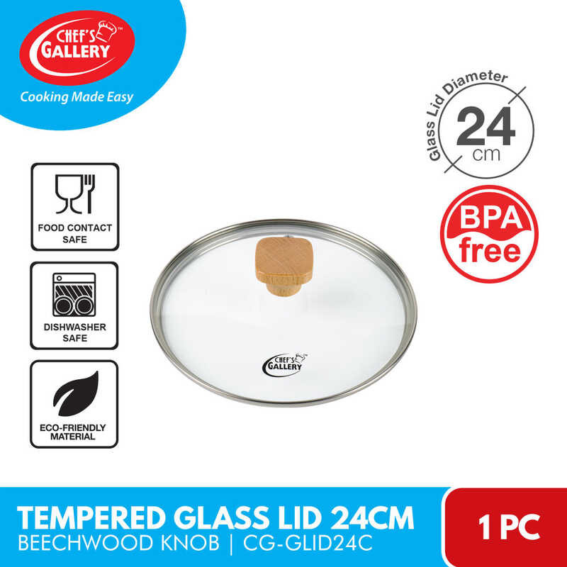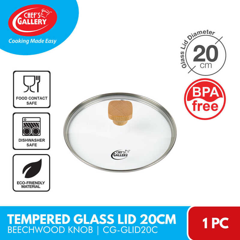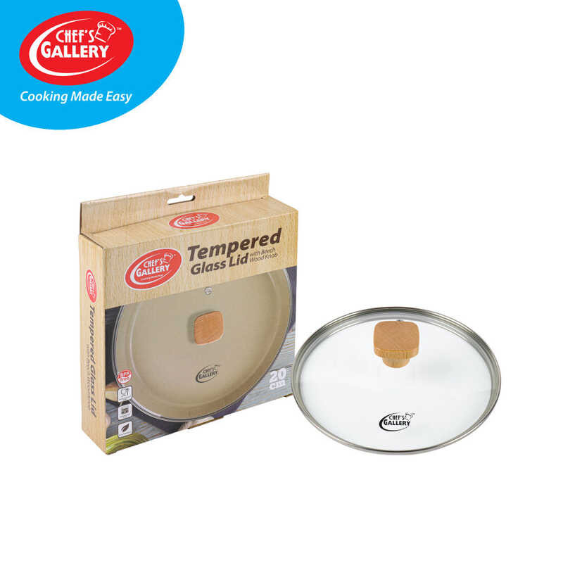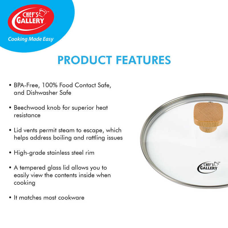 Chef's Gallery Tempered Glass Lid With Air Vent | Takip Ng Kawali Stainless Steel Rim Beech