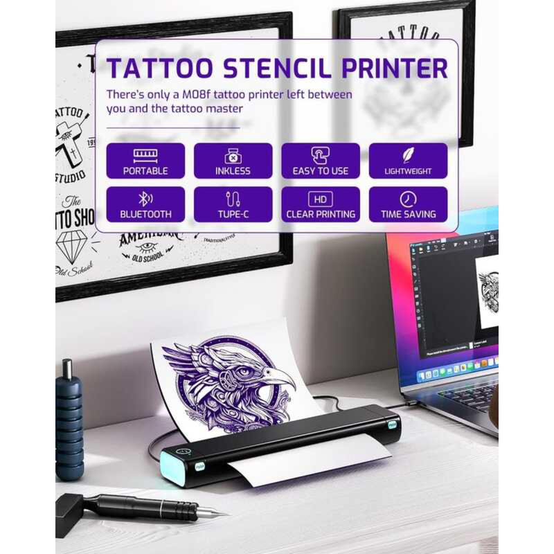 Phomemo M08f Bluetooth Tattoo Stencil Printer, Portable A4 Thermal Printer,Compatible With PC And CW
