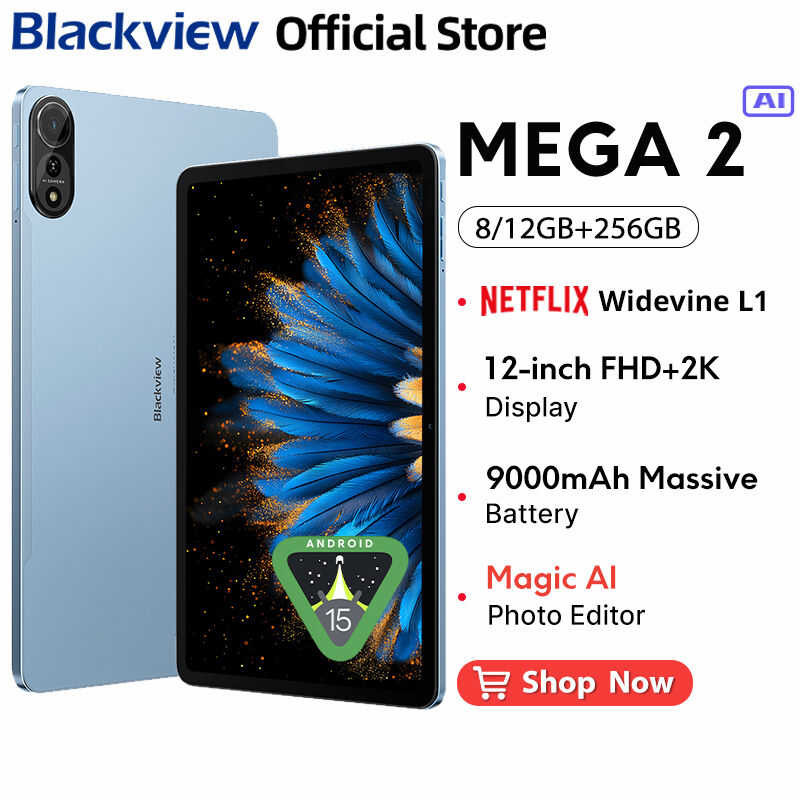 NEW Arrival Blackview MEGA 2 Tablet 12-Inch Fhd+ 2K Display Android 15 9000Mah Massive Battery CWY