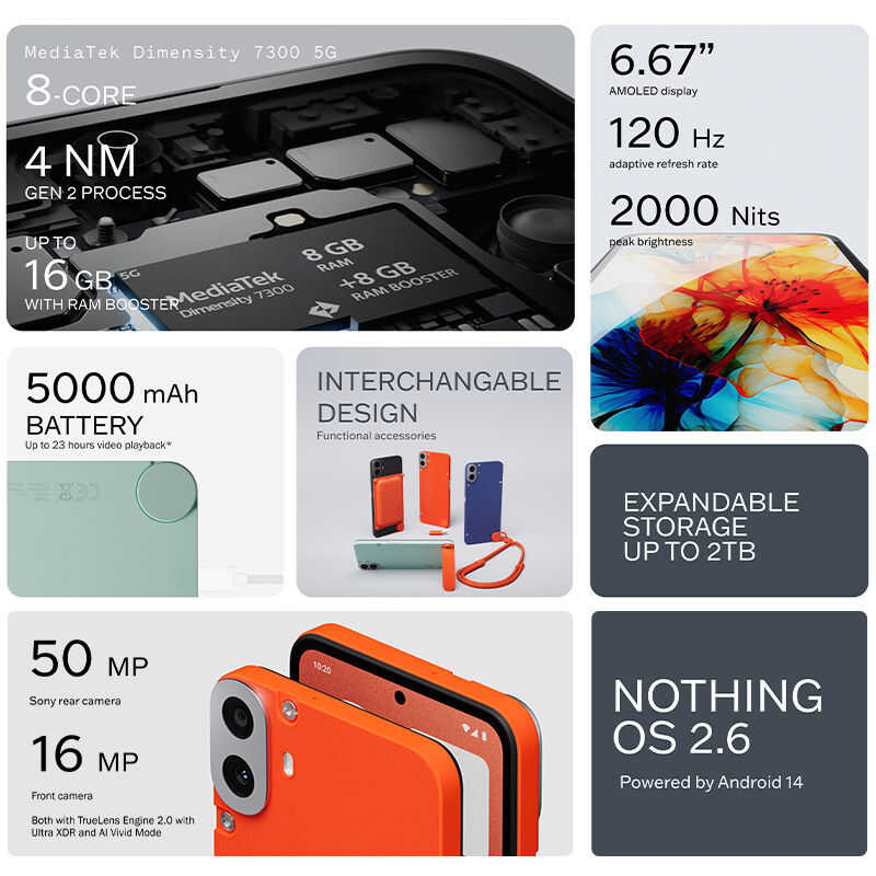 Nothing CMF 1 Smartphone 5G 6.67” Super AMOLED LTPS 8Gb + 256Gb 5000Mah Battery OS 2.6 CWY