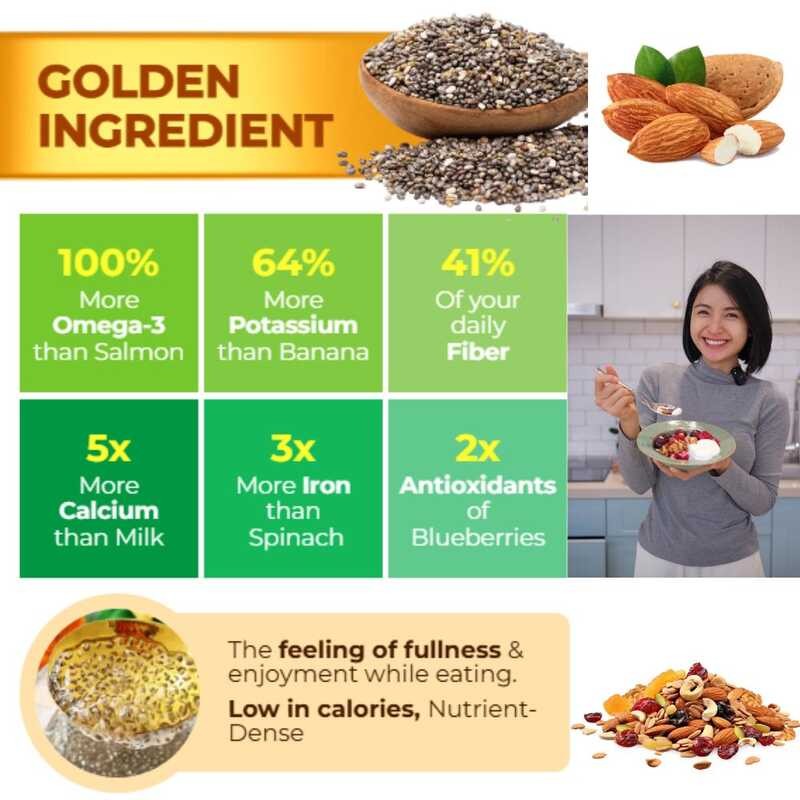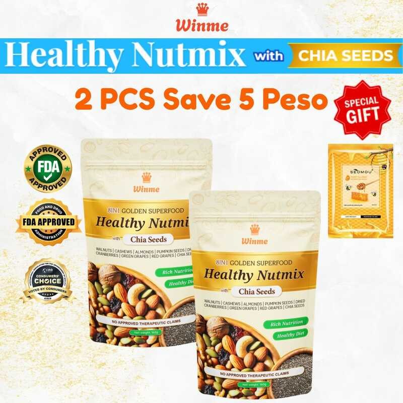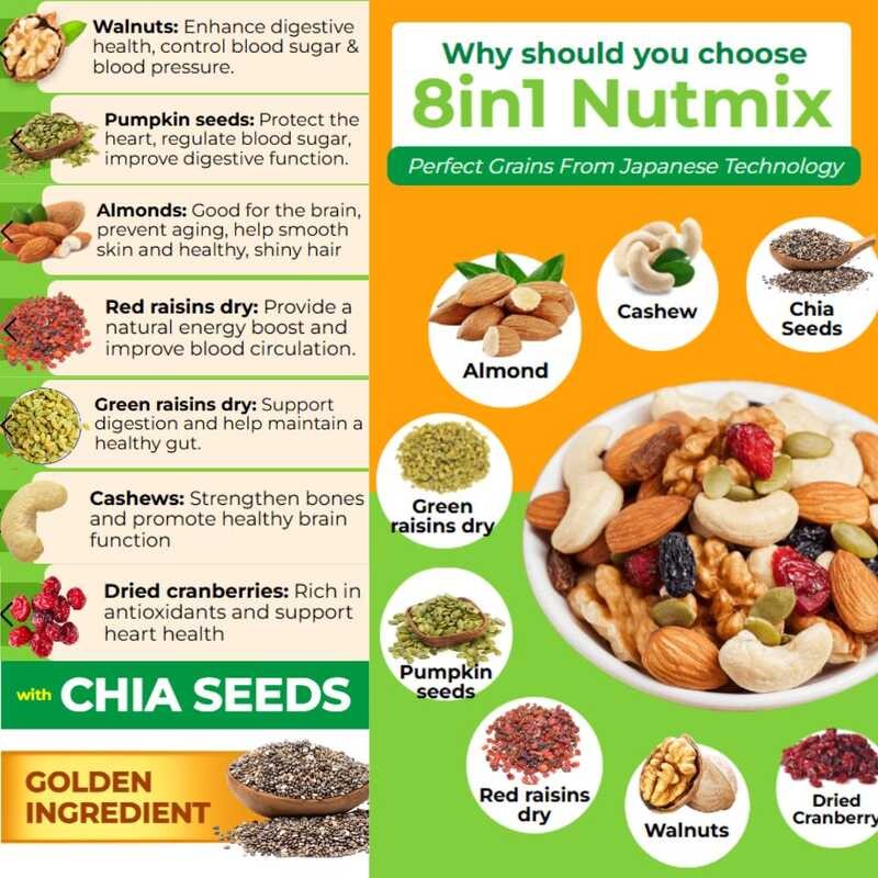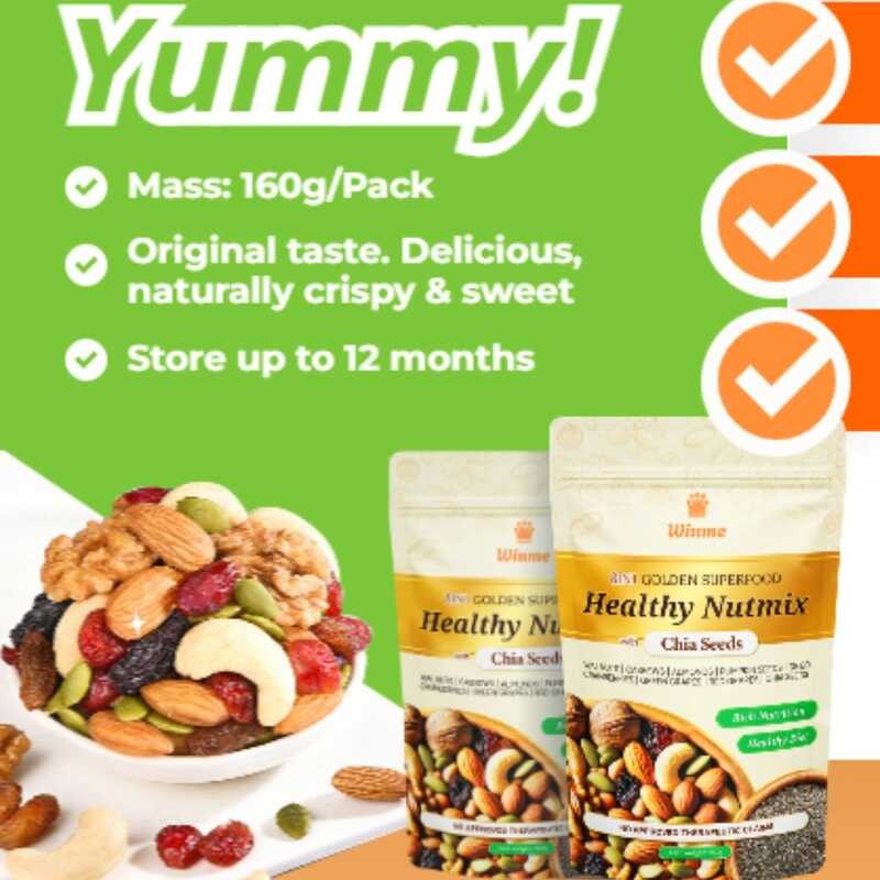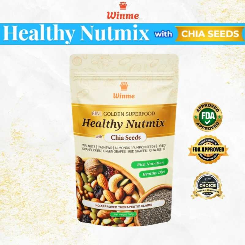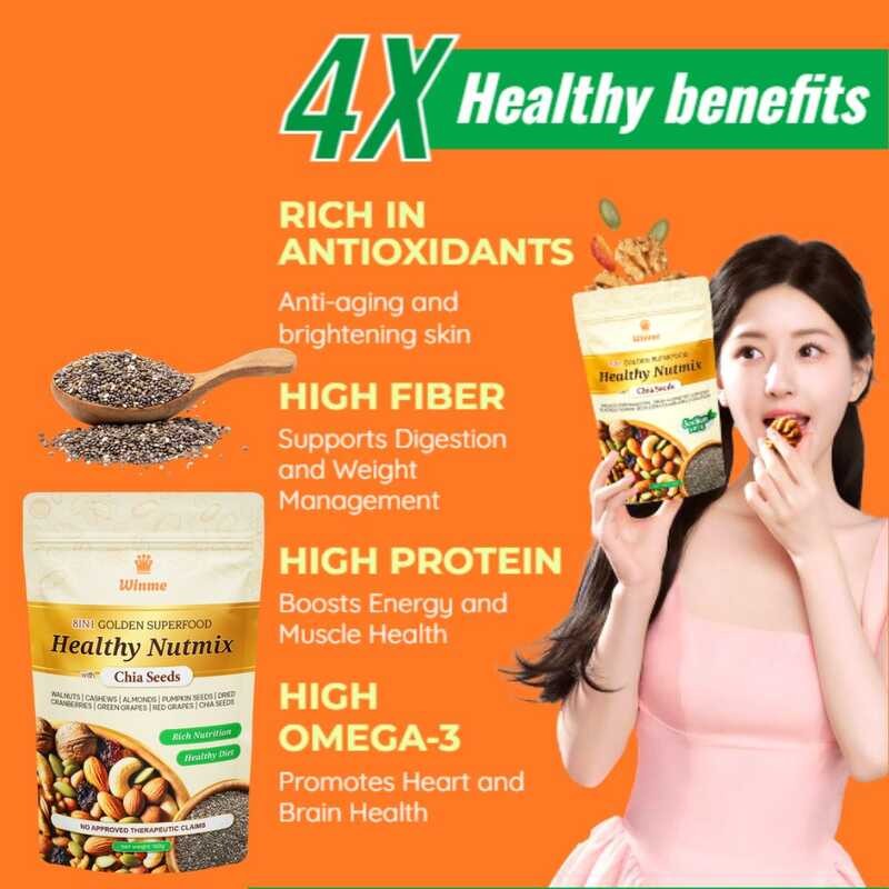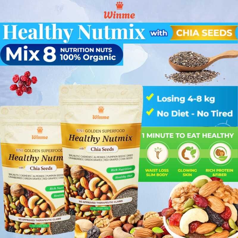 Winme Healthy Nutmix With Chia Seeds Waist Loss Slim Body Glowing Skin Rich Protein & Fiber 8 Nuts
