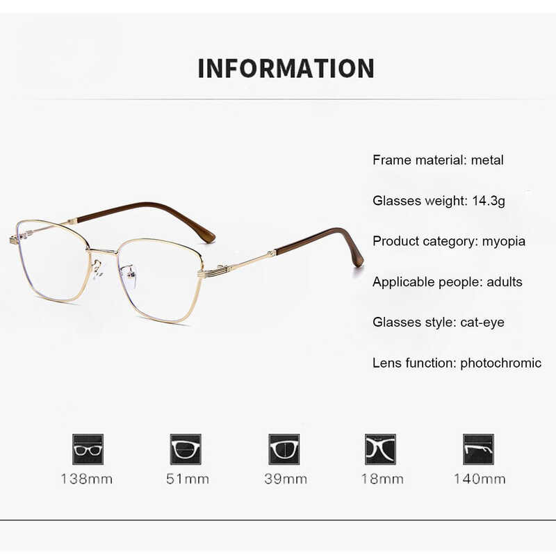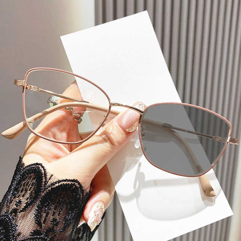 Cat Eye 3 In 1 Photochromic Eyeglasses Transition Myopia Glasses With Grades 0 -50 -100 -150 -200 Yw