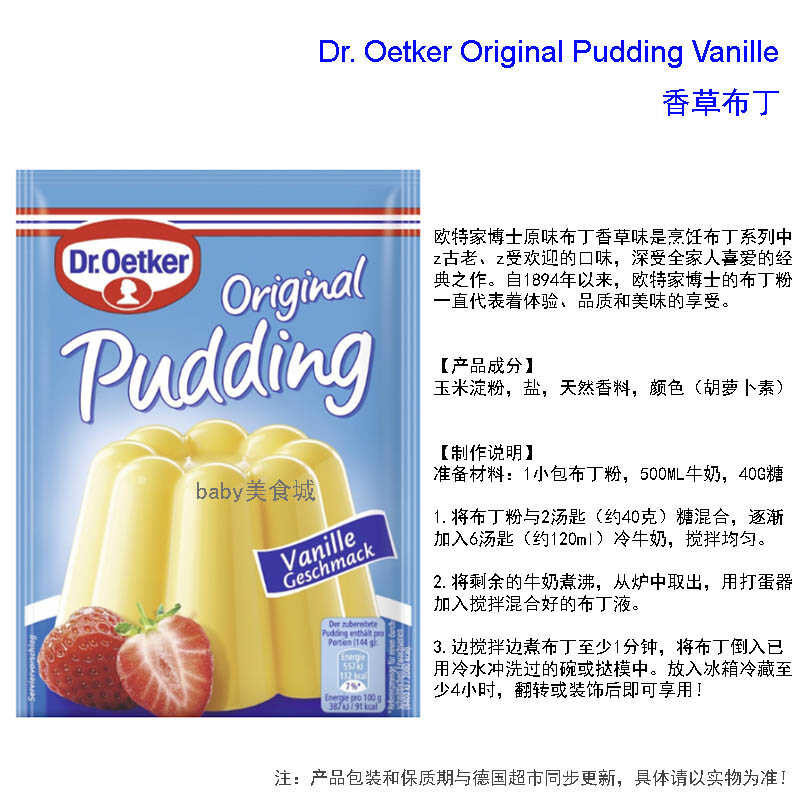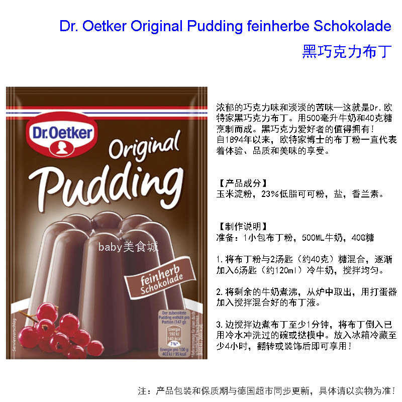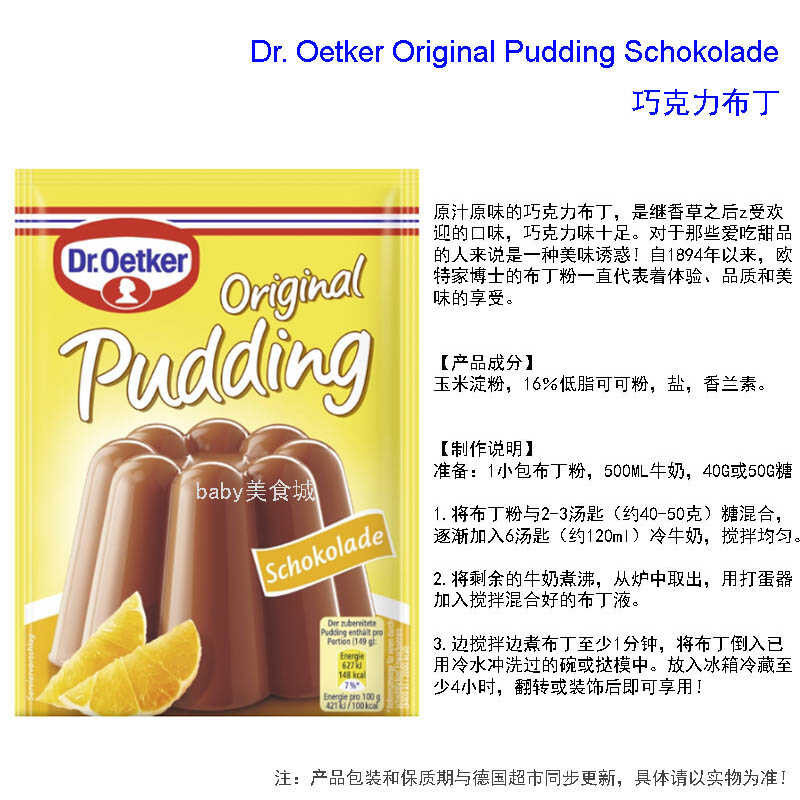 In Stock German Imported Dr. Oetker OTE Chocolate Vanilla Pudding Powder 4 Pie Single Piece/3 Vgfg
