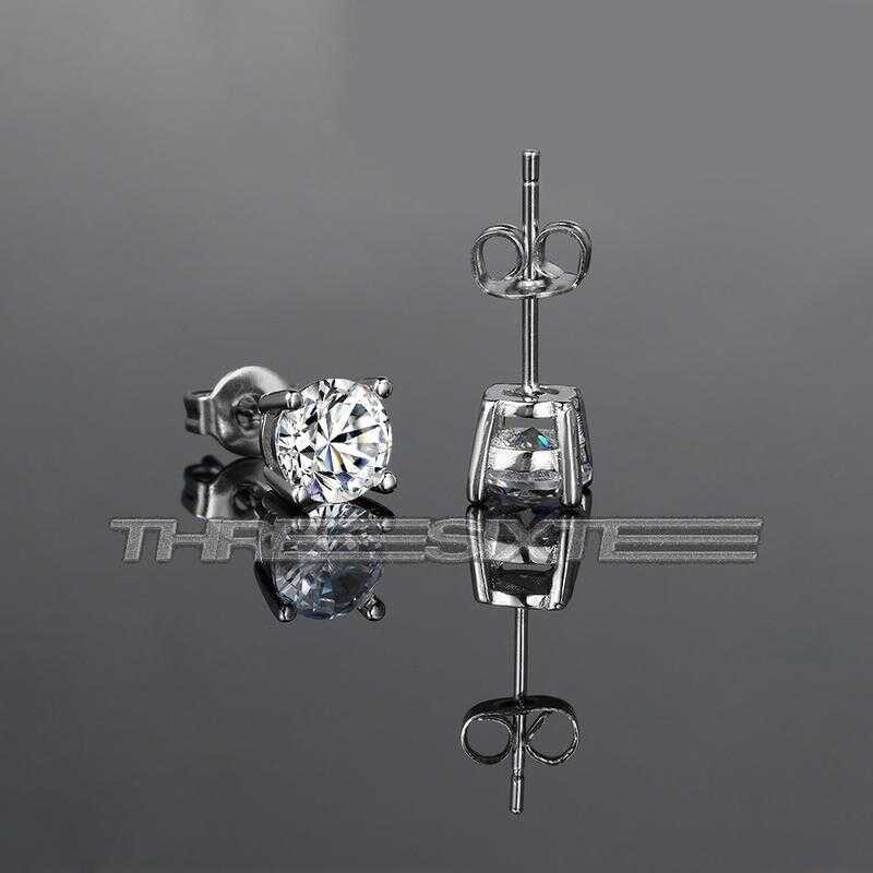 Y2k Threesixtee Round Zirconia Stud Earrings 3Mm TO 6Mm For Men / Women Zircon Stone Hypo-Allergenic