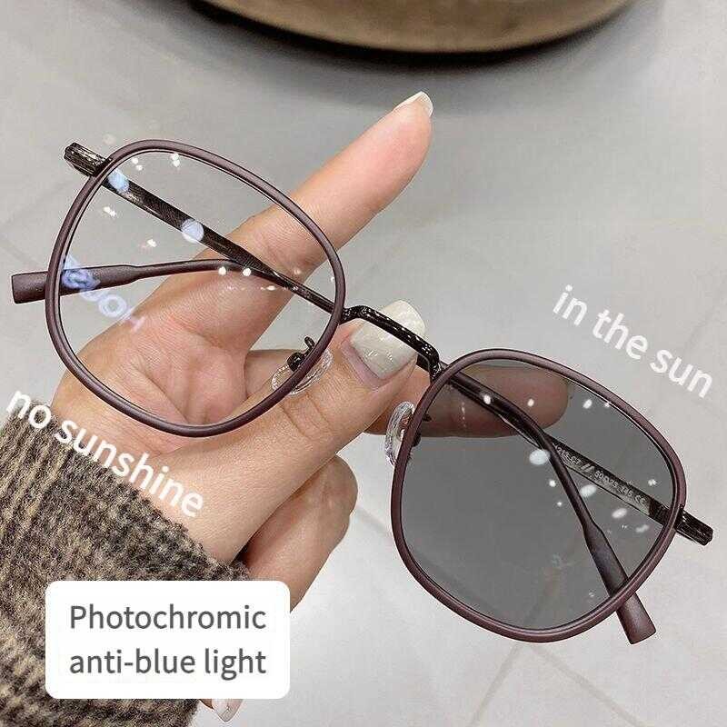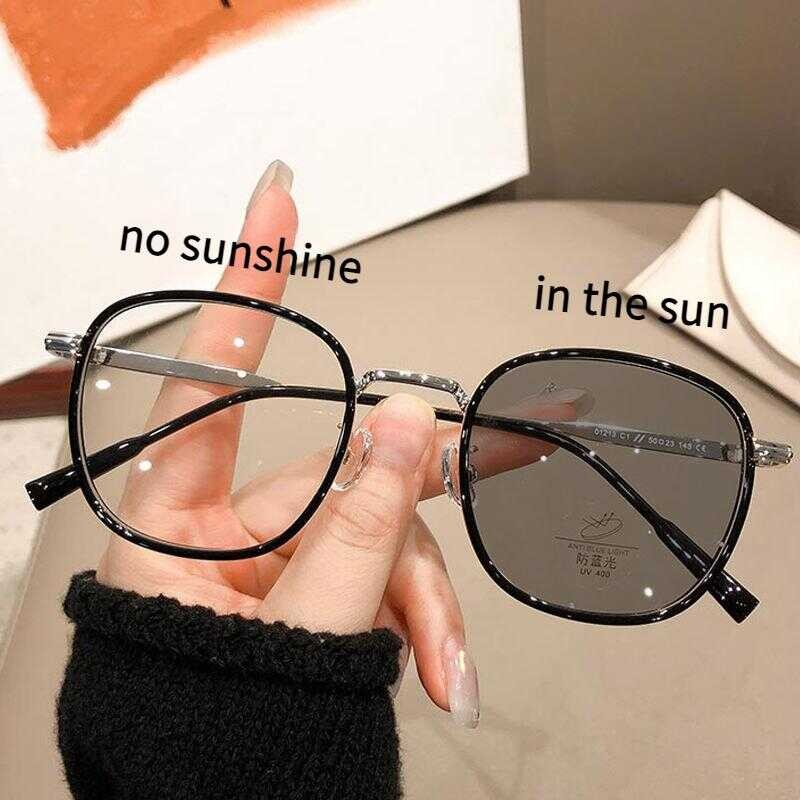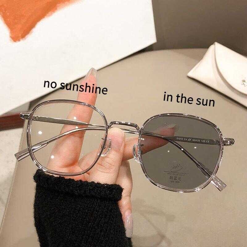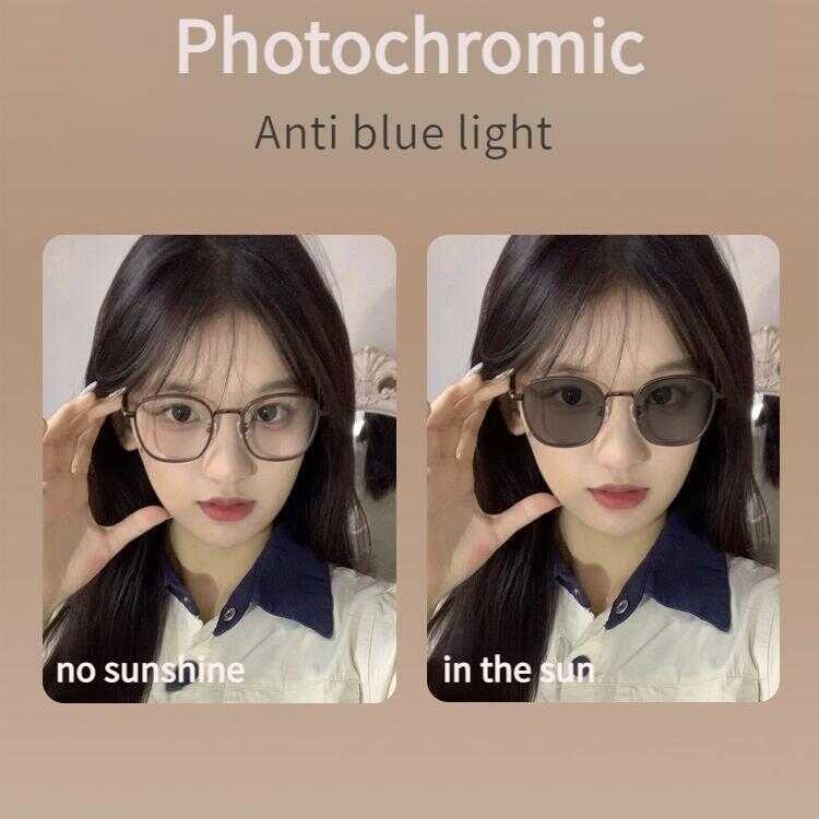 Photosensitive Photochromic Anti Blue-Ray Glasses Men And Women Good-Looking Round Frame Slim Plain
