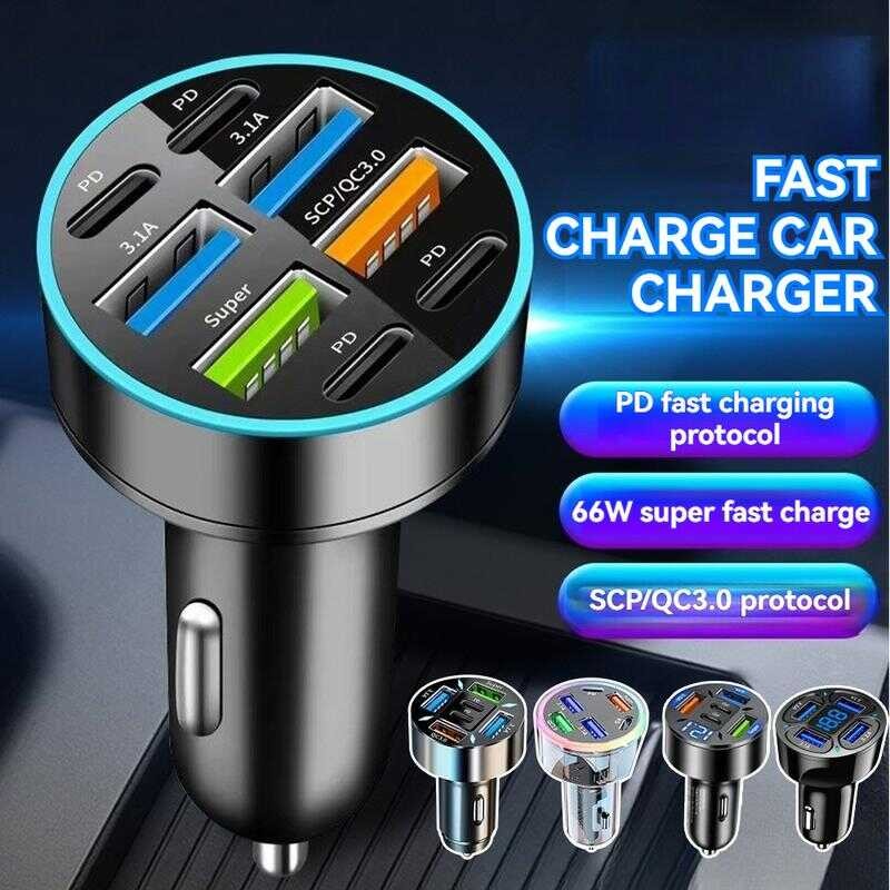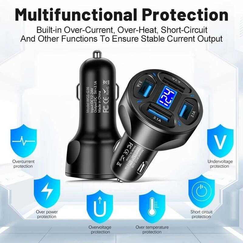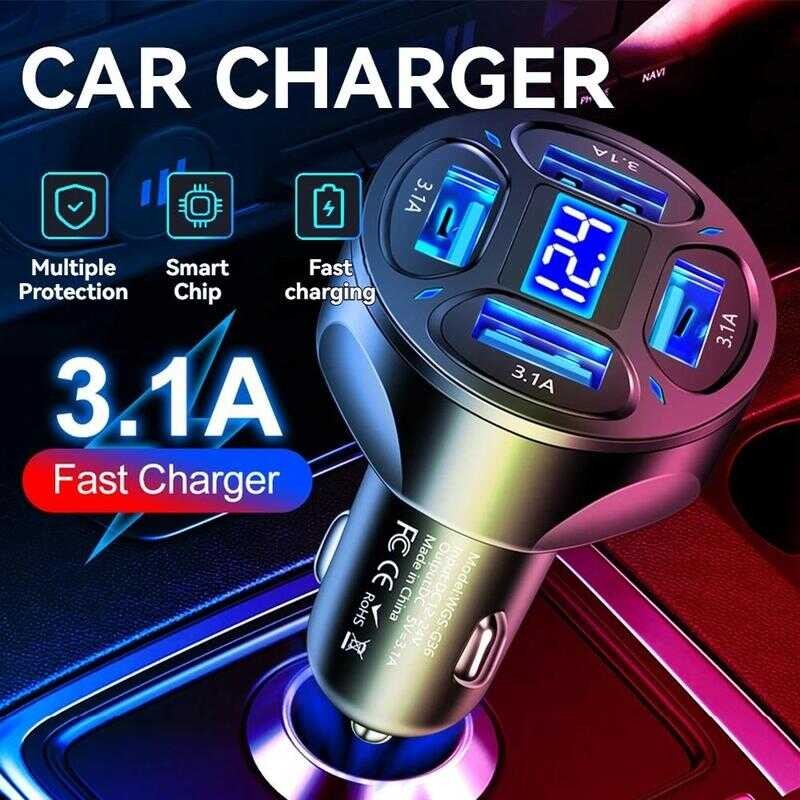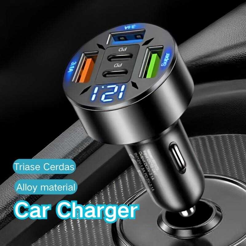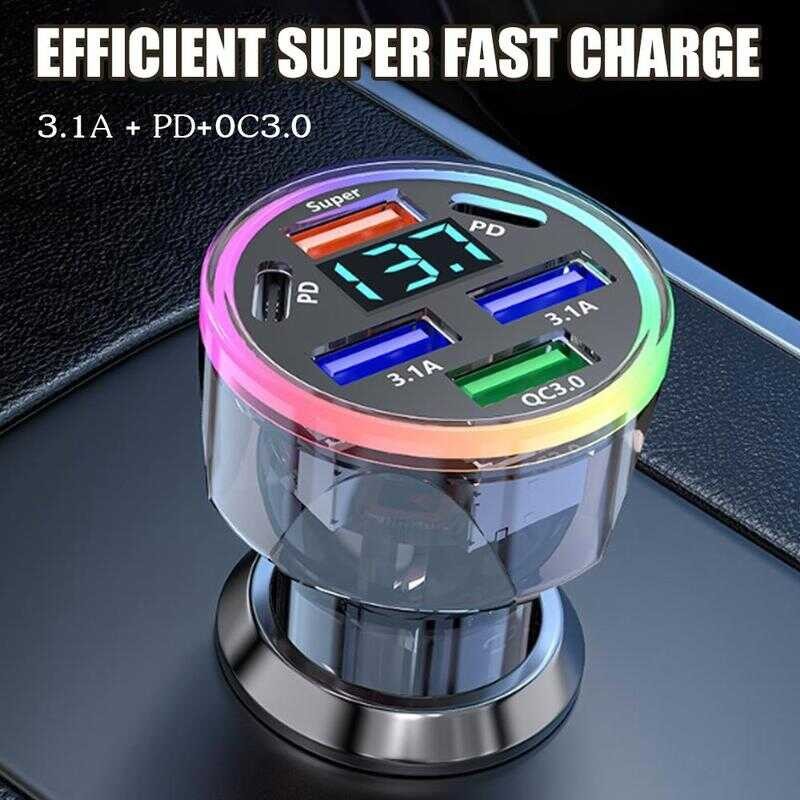 100W 4-Port USB Type C Car Charger Fast Charge 3.0 Digital Display Mobile Phone Adapter Lyy