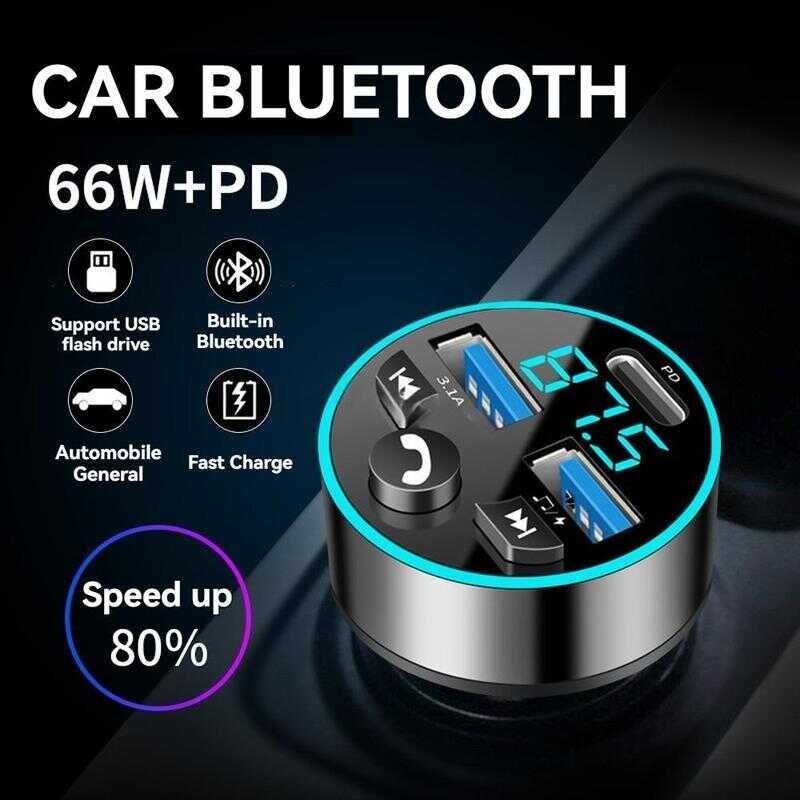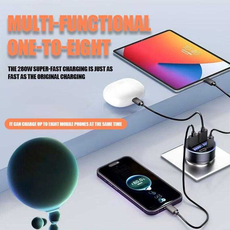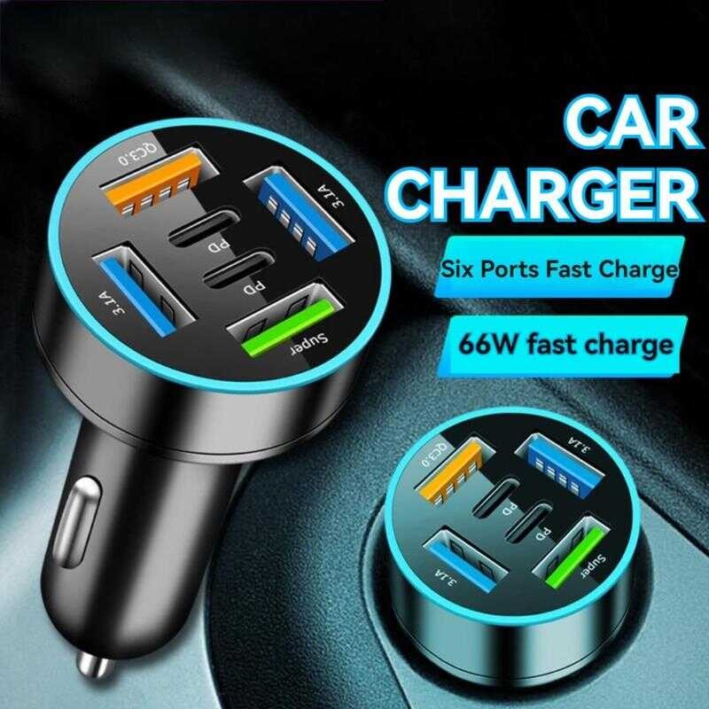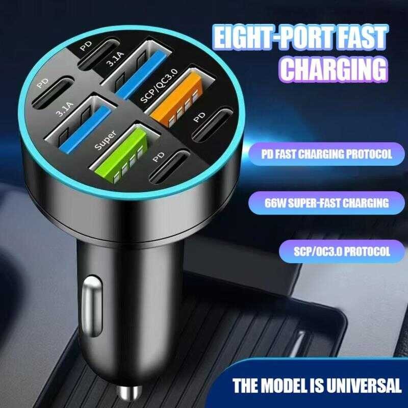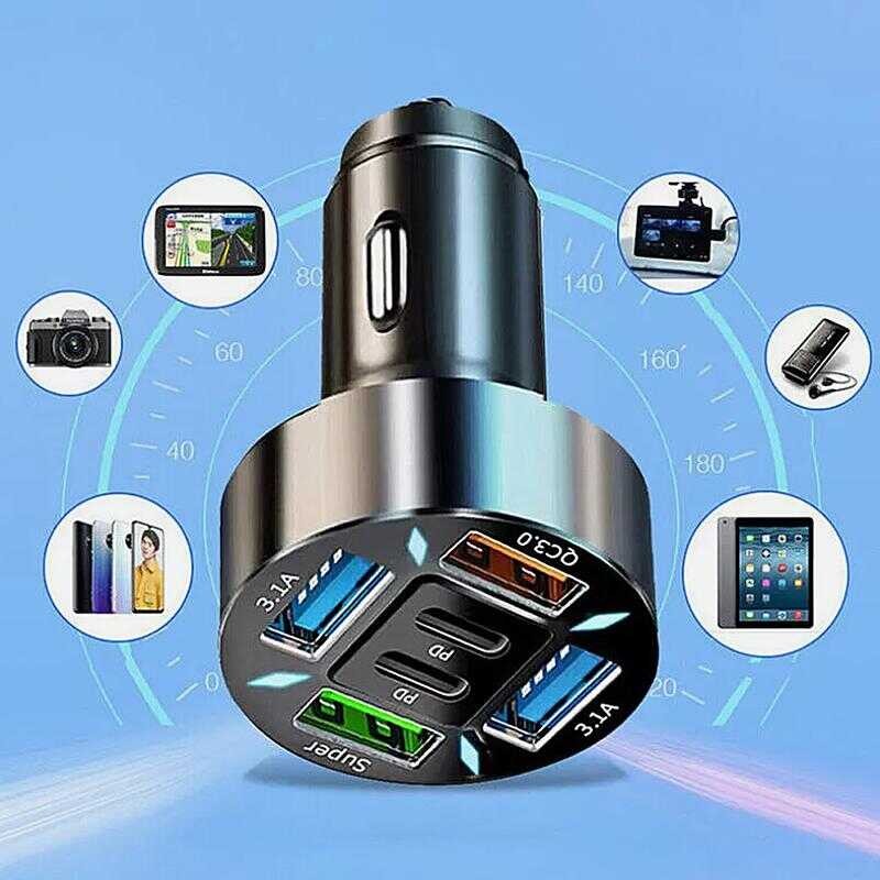 100W 4-Port USB Type C Car Charger Fast Charge 3.0 Digital Display Mobile Phone Adapter Lyy