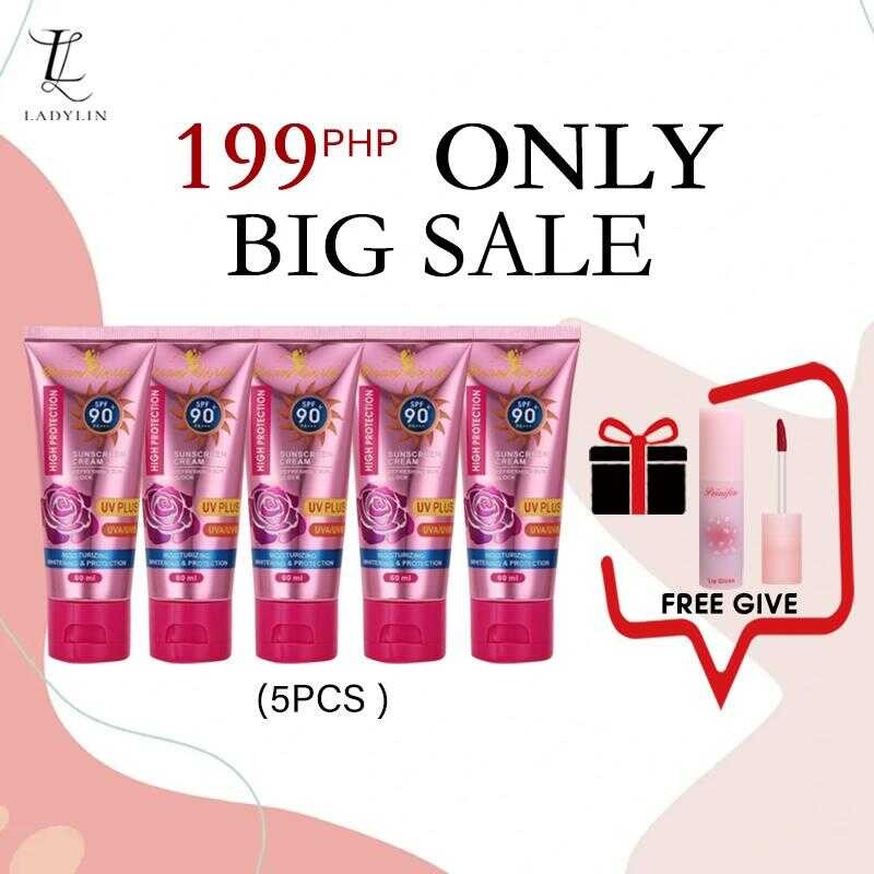 Ladylin 5Pcs/Set Sunscreen Cream Spf 90+ High Protection UV PLUS 60Ml Free Give Lip Glaze Lyy