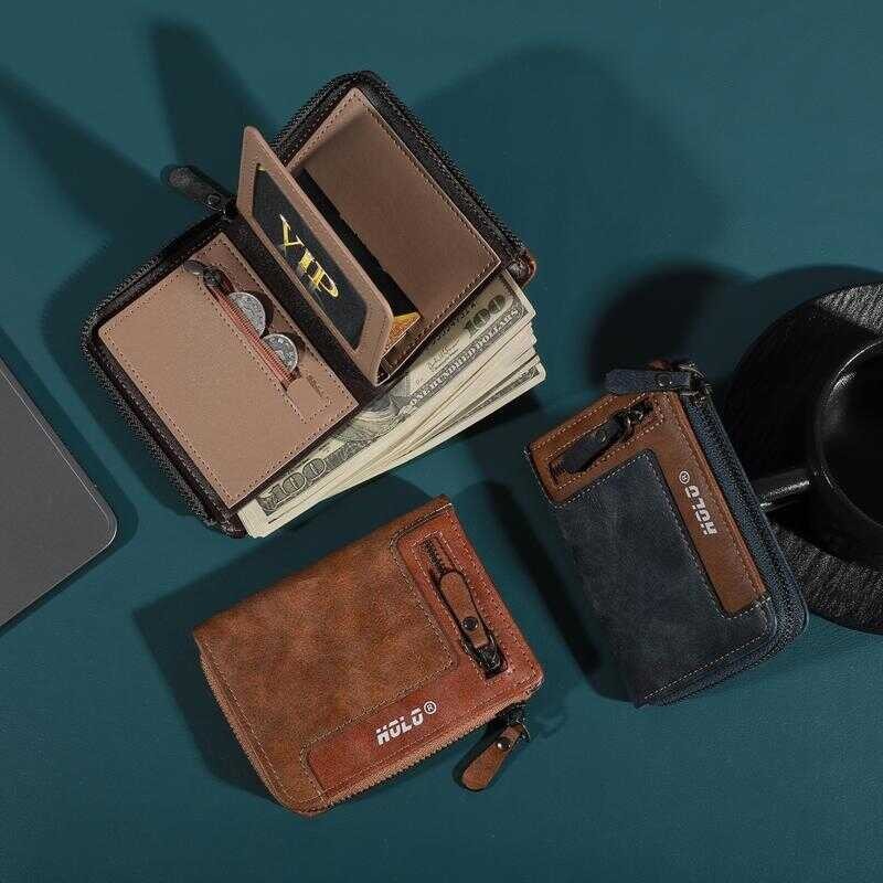 【Holo】Men's Retro Fashion Multifunctional Zipper Wallet, Versatile Multi Card Slots Large Capacity Y
