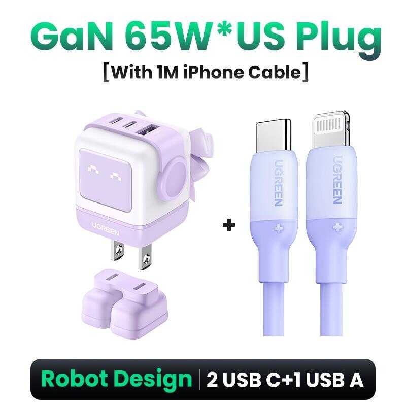 (W)[Buy 1 Free Gift] UGREEN Uno 65W 30W Robogan Fast Charger Compatible For Iphone 16/15/14/13 Ipad