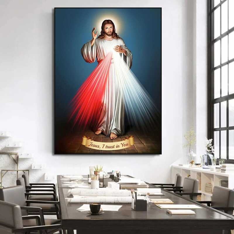Vintage Glowing Jesus Christ Poster Jesus,I Trust In You Qoutes Canvas Painting Sacred Heart Of 0706