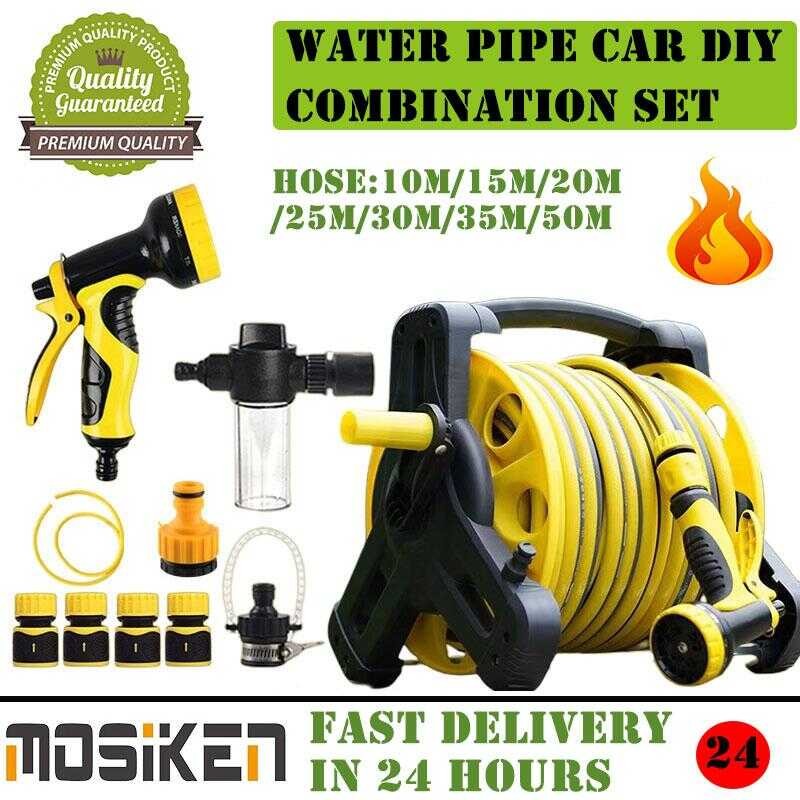 10M 15M 20M 25M 30M 35M Hose Reel Set Water Pipe Roll Storage Rack Garden Holder Shower Hose E53