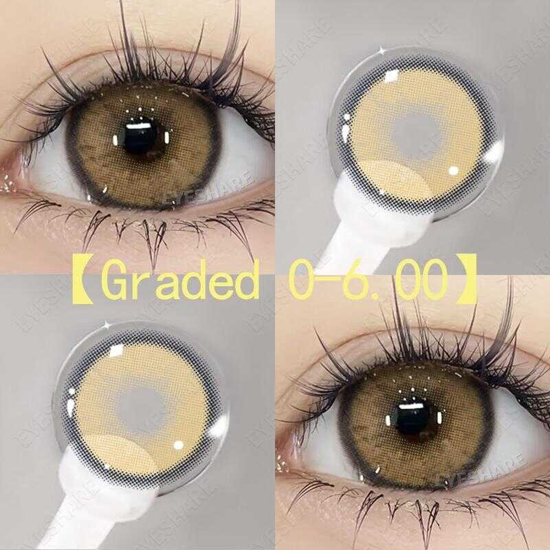 【99Piso】Eyeshareph New Lemon Gray Brown Grade-(1.00~6.00) Soft Contact Lenses One Year Use 14Mm (No