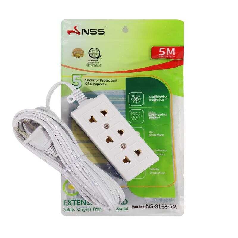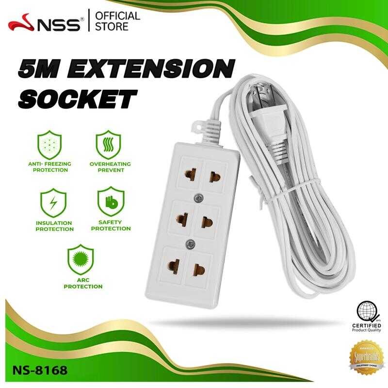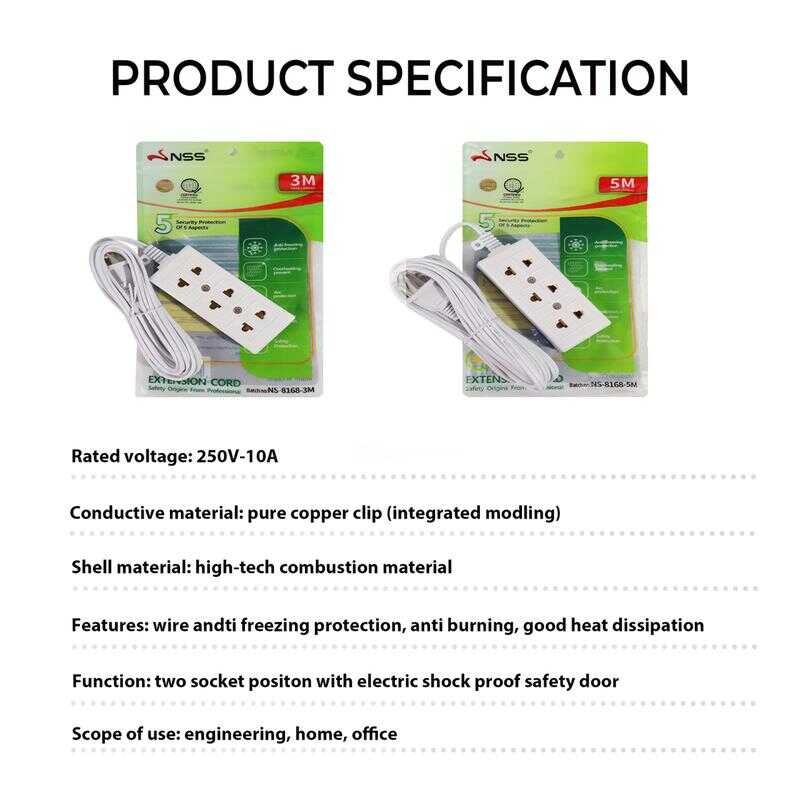 NSS 5M Heavy Duty Extension Cord Accessory– 250V 10A | Pure Copper Clips Anti-Overheat, Electric Ce4