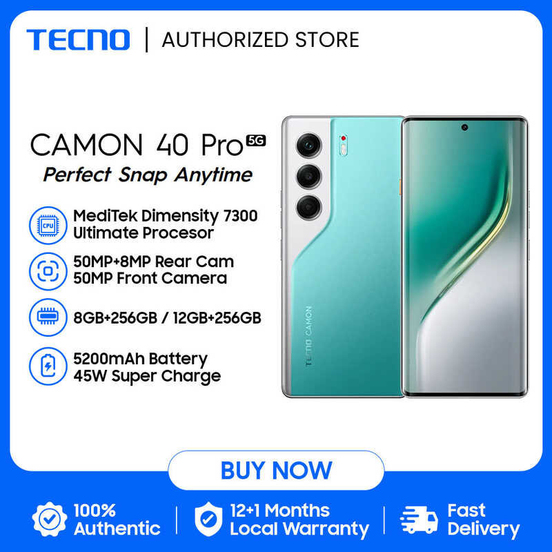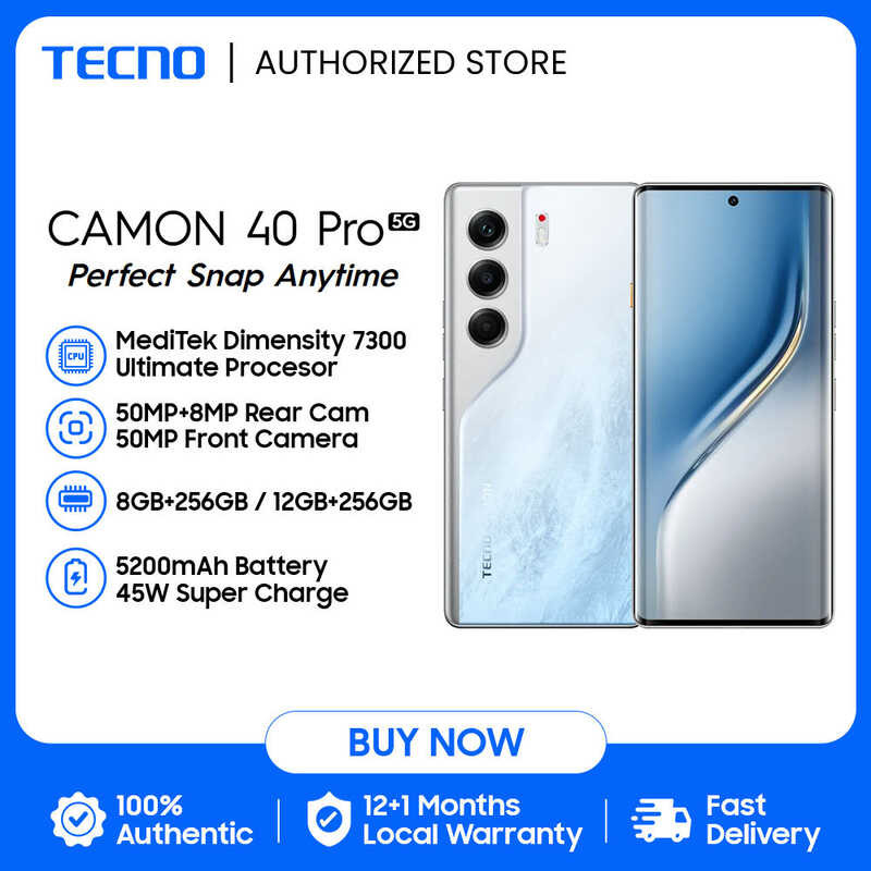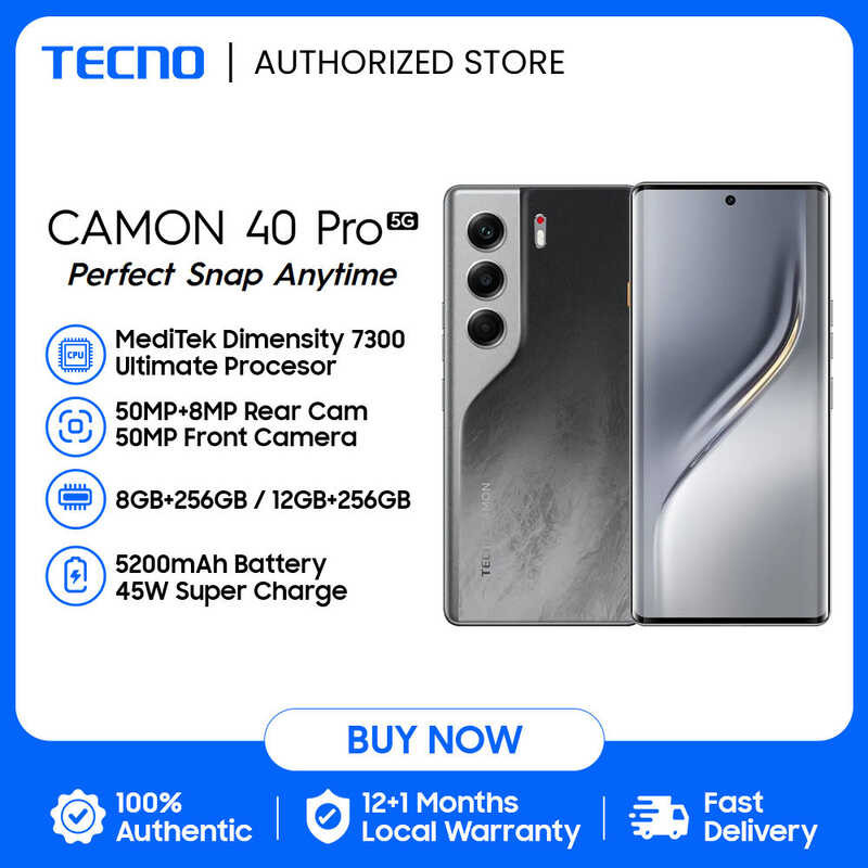 TECNO CAMON 40 Pro 5G Smartphone | 8Gb+256Gb / 12Gb+256Gb Dimensity 7300 Ultimate Processor 50Mp 4F6