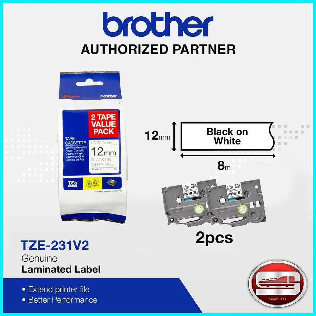 Brother TZe-231 V2 "2sets" Black on White Tape for P-Touch