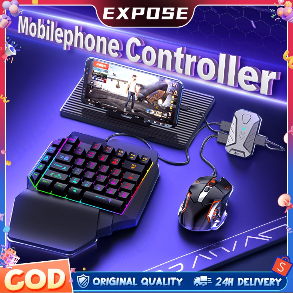 EXPOSE Gaming Keyboard and Mouse Set for mobile Controller PUBG Converter for Android One Hand
