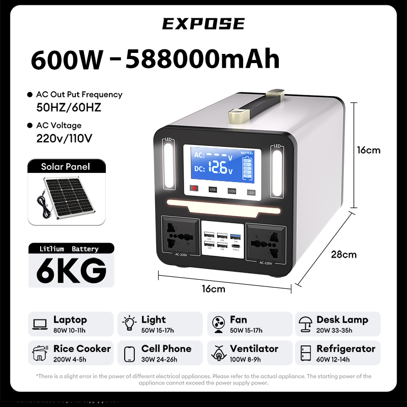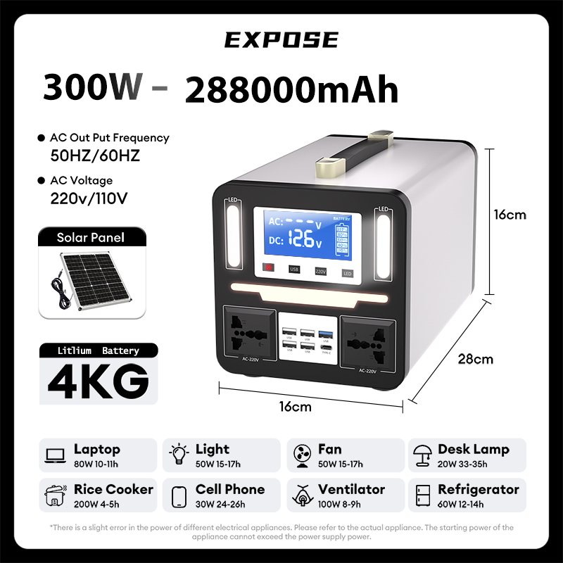 EXPOSE 1000W 988000mAh Solar Power Station 1000W 650W 300W Portable solar generator station