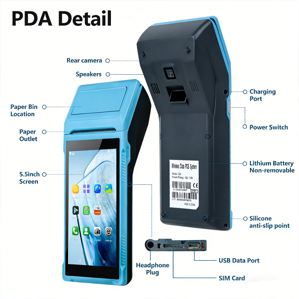 EXPOSE Thermal Handheld POS Receipt PDA Printer Android 8.1 5.5inch HD Support WiFi Bluetooth 58mm