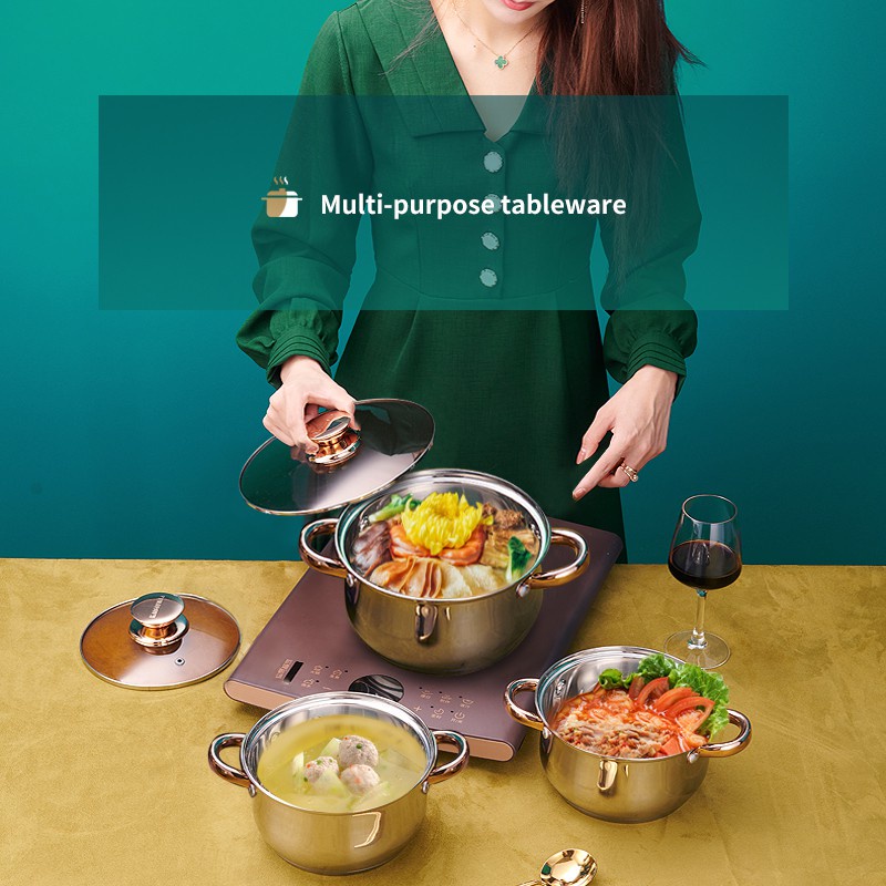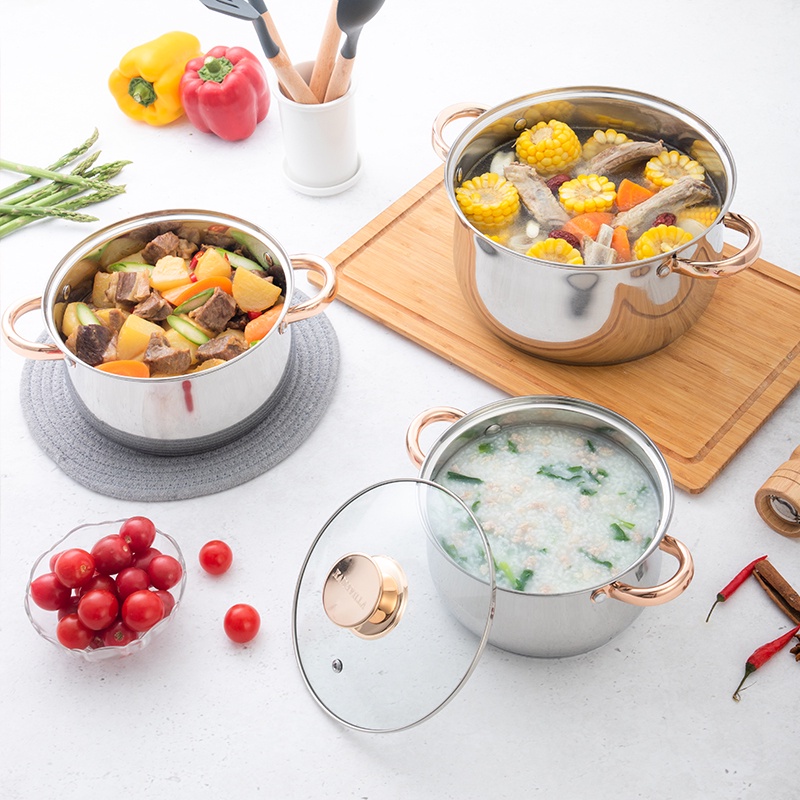 Kaisa Villa casserole with lid stainless Steel soup pot cooking pot kitchenware gas universal 2.1L