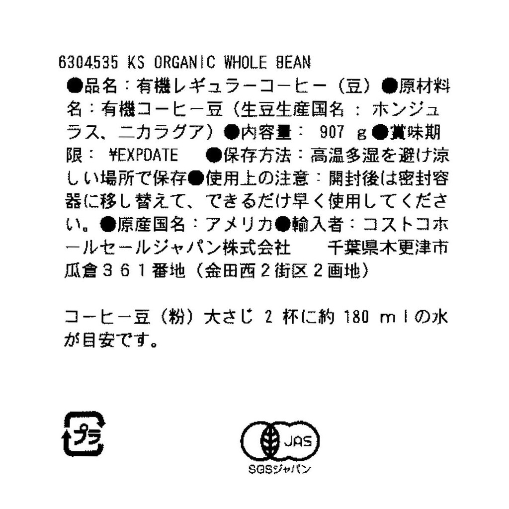 Kirkland Signature Coffee Medium Dark Roast [USDA] Organic Whole Bean Blend 907g - Costco