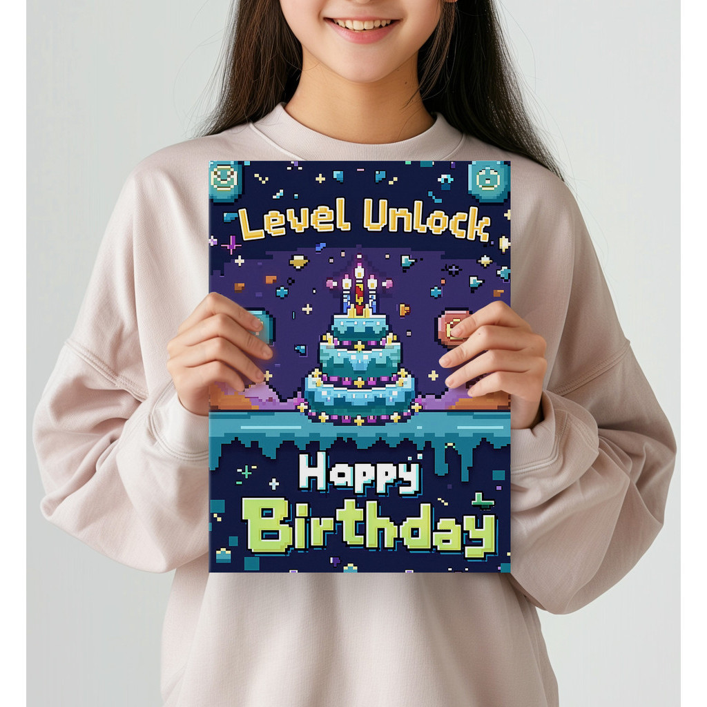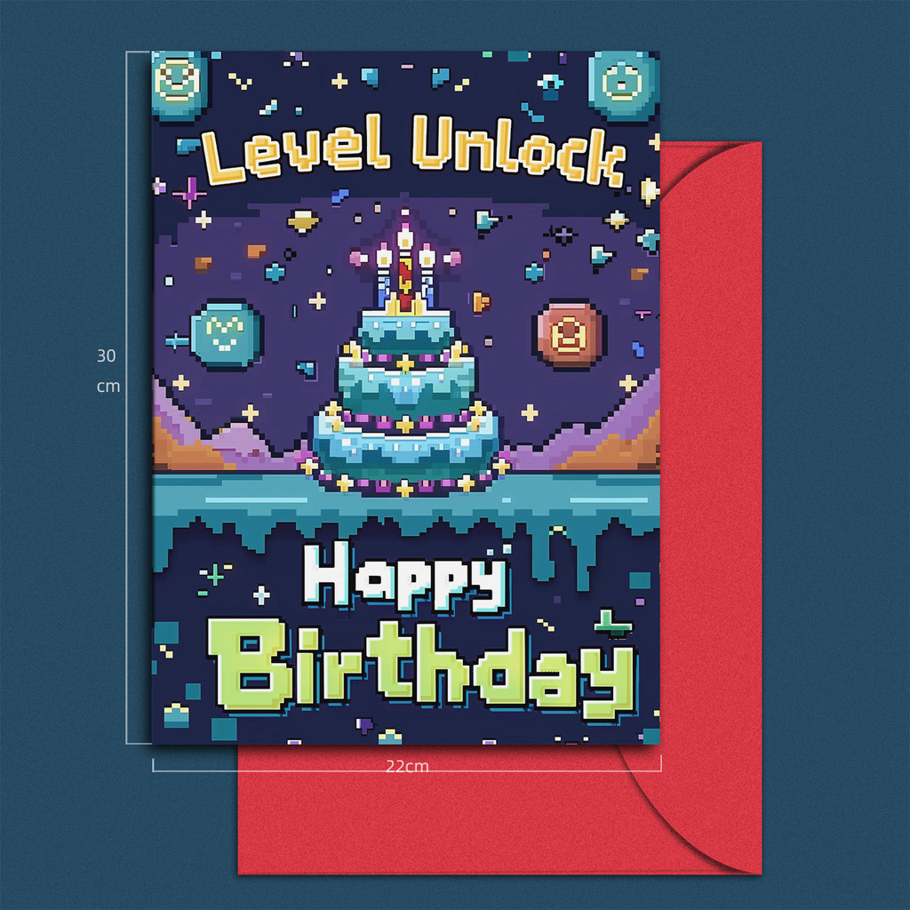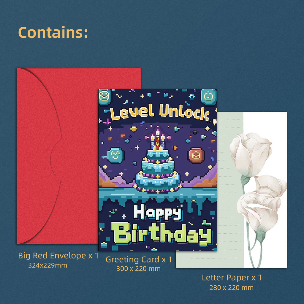 Big A4 Size Pixel Game Style Birthday Greeting Card with Pearlescent Envelope for Boy Son Boyfriend Husband