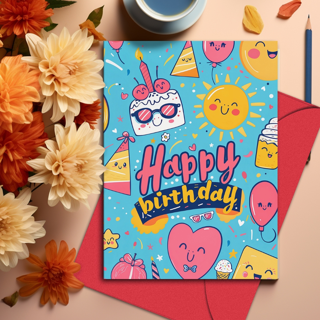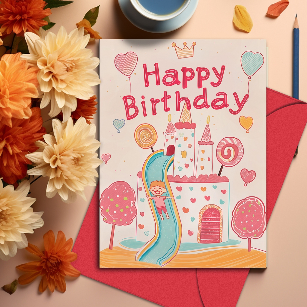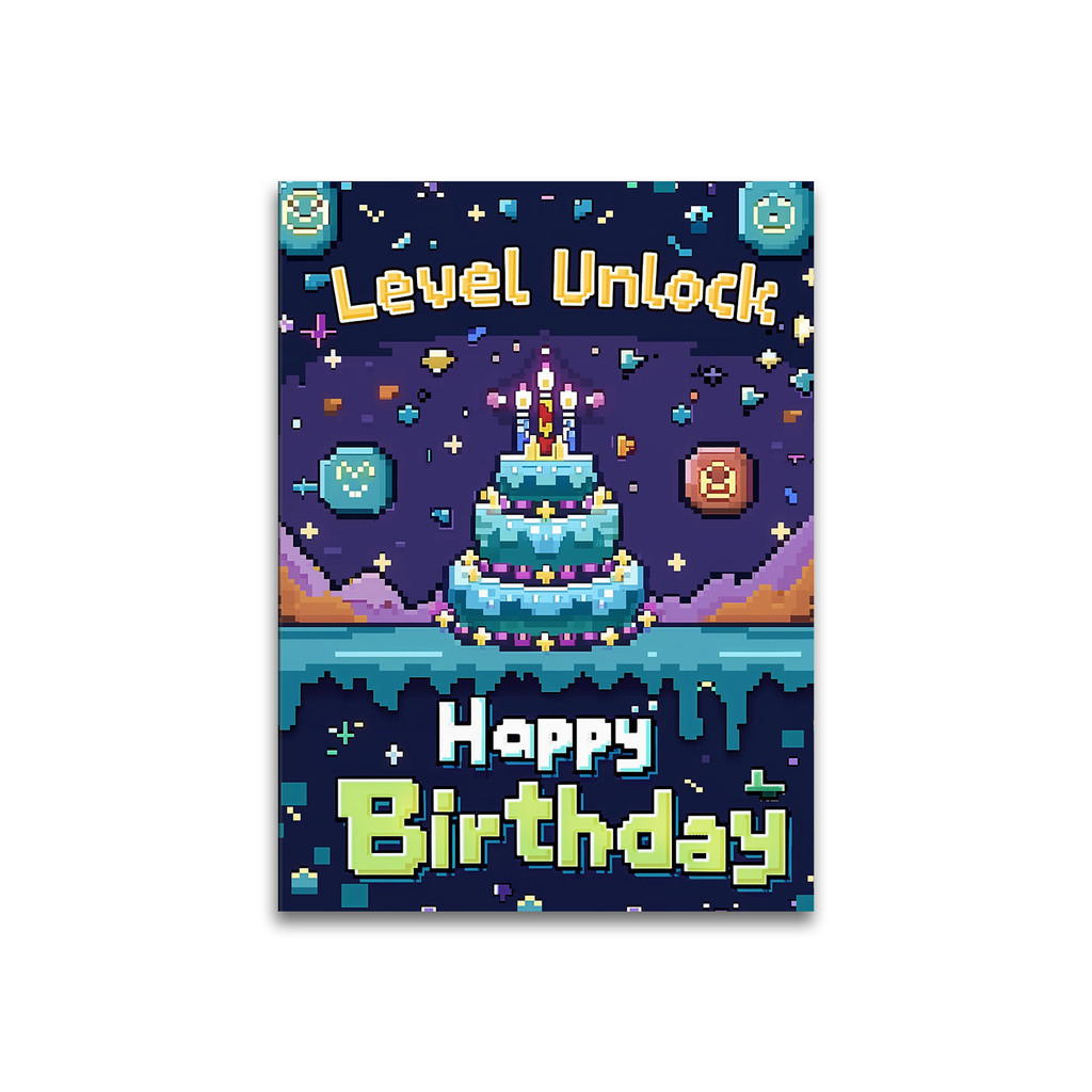 Big A4 Size Pixel Game Style Birthday Greeting Card with Pearlescent Envelope for Boy Son Boyfriend Husband