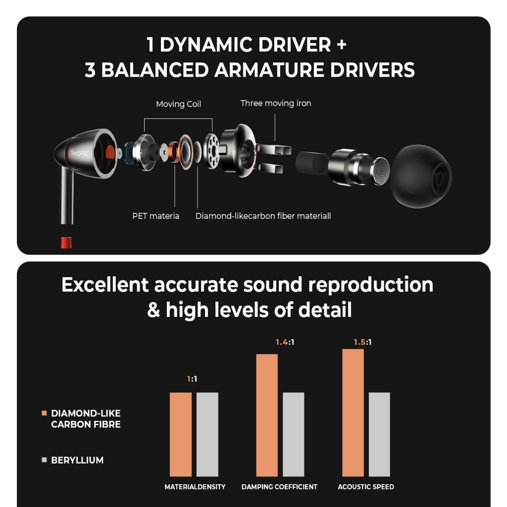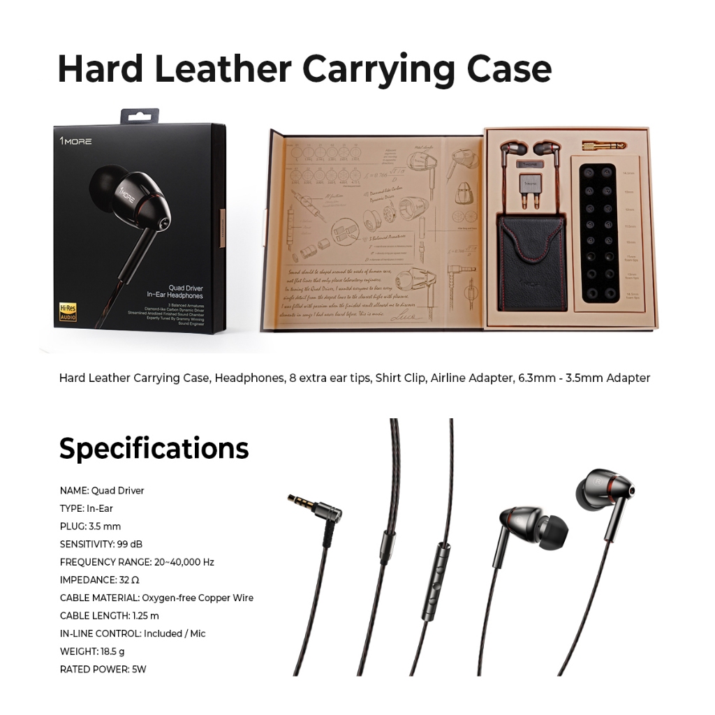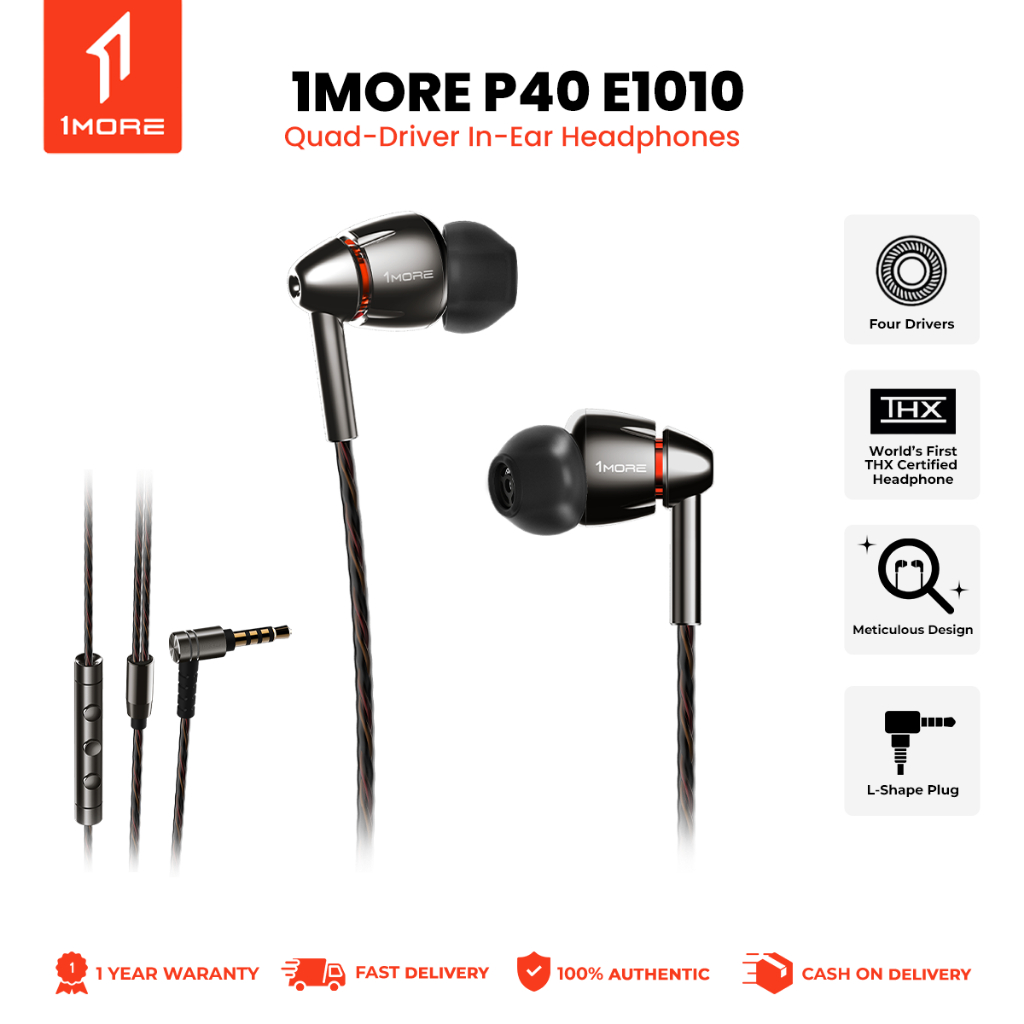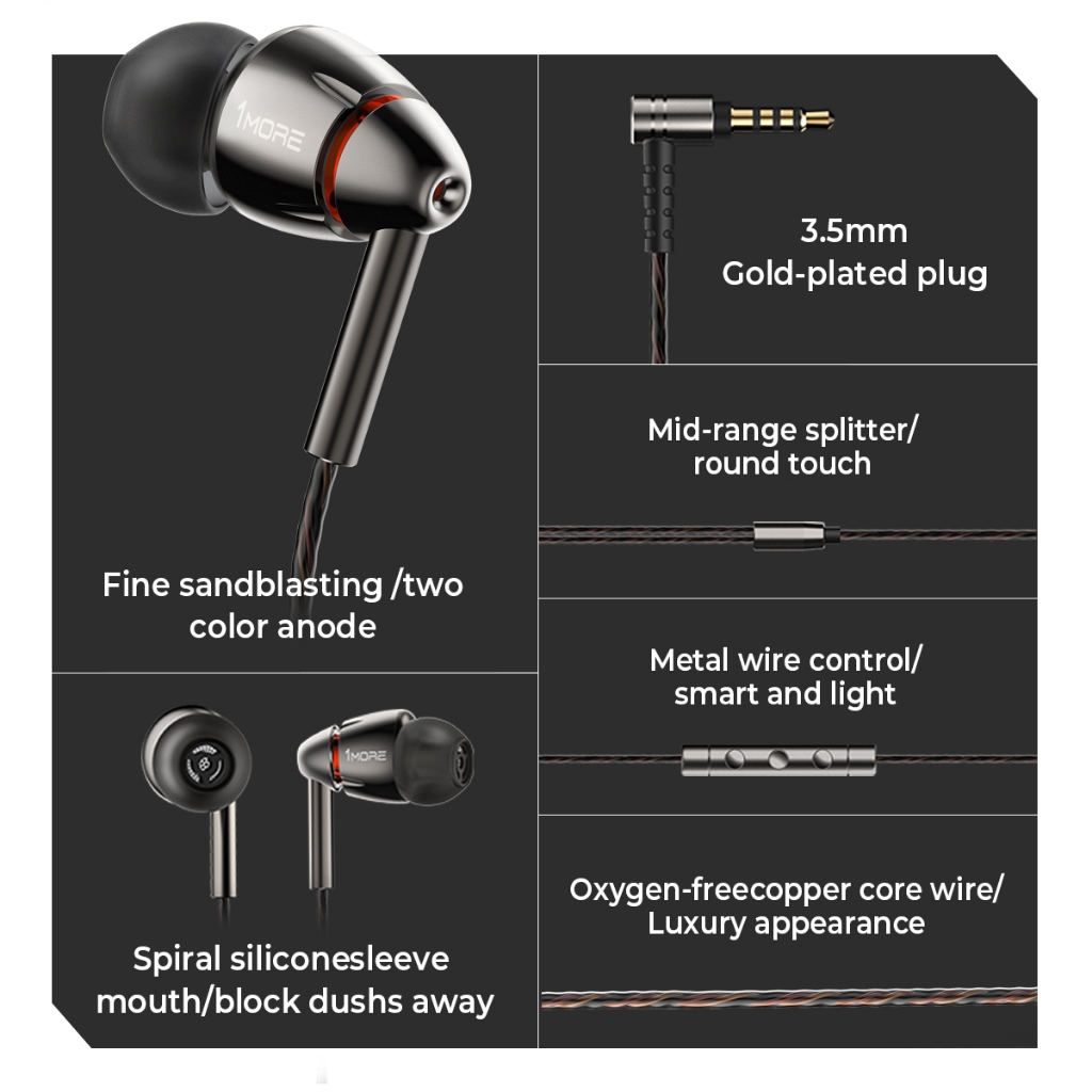 1MORE-E1010 Quad Driver in-ear headphones, HiFi Hi-Res audio inline control with microphone Earphone
