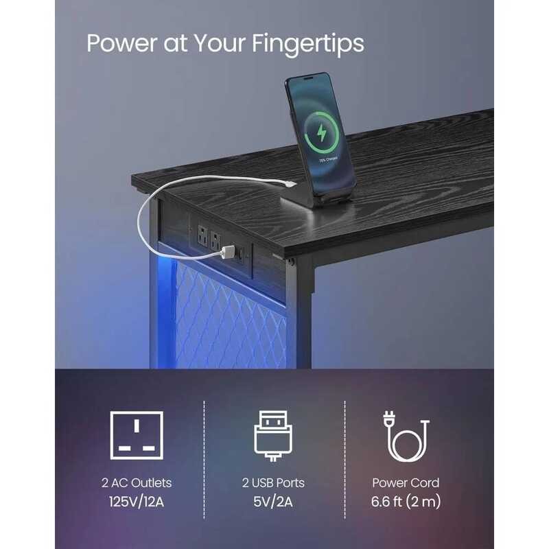 Bar Table with Power Outlets, 47.2 Inches LED Lights Narrow Tall Pub Table, Counter Height Console