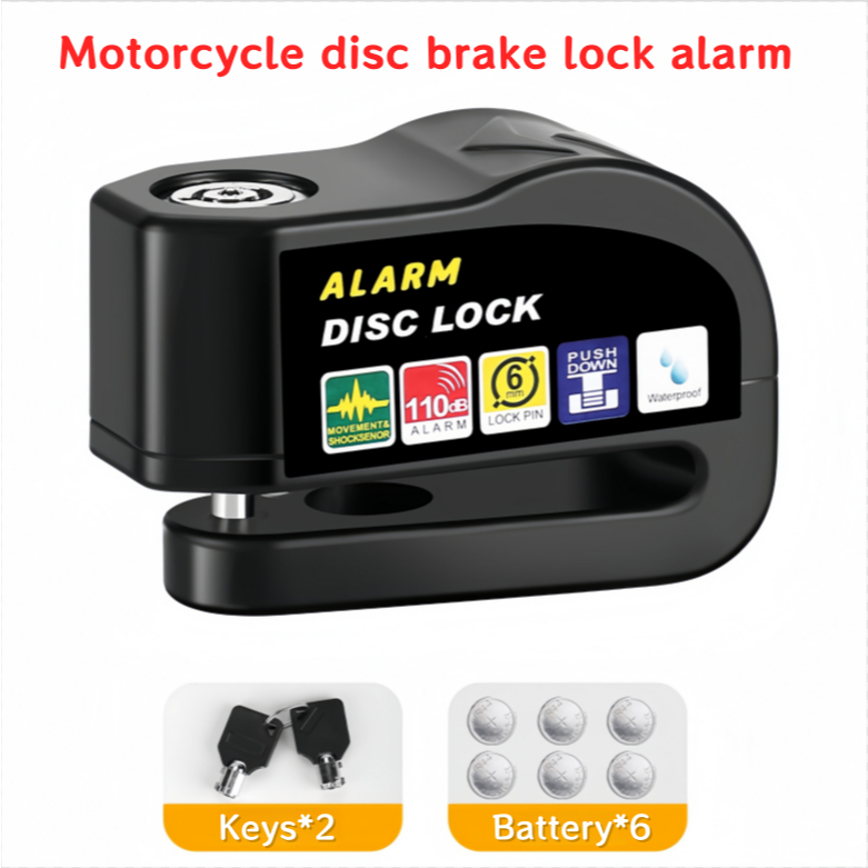 Motorcycle Bike Disc Brake Lock With 120dB Alarm-Anti-Theft,Waterproof,For Motor And E-Bike