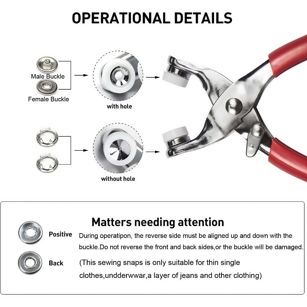 Snap Fastener Tool Kit Metal Prong Snaps Buttons for Clothing Crafting Sewing Leather Snaps Buttons