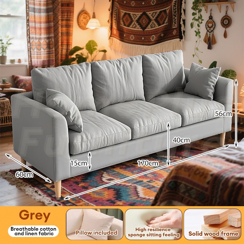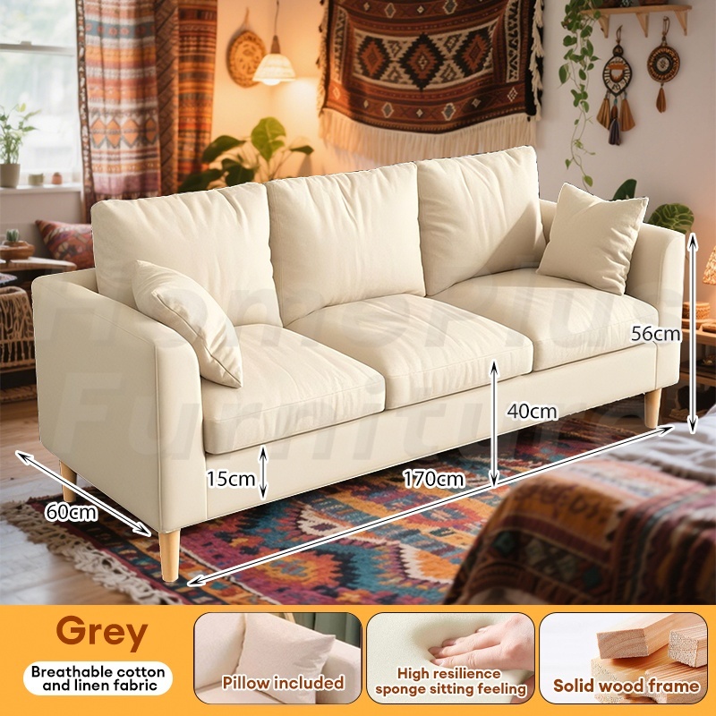Solid Wood Fabric Sofa 1-3 Seater Nordic Style Sofa Simple&Modern Fabric Sofa Bed Wooden Sofa Chair