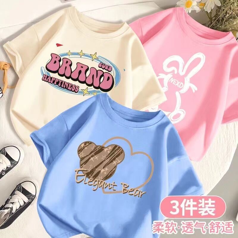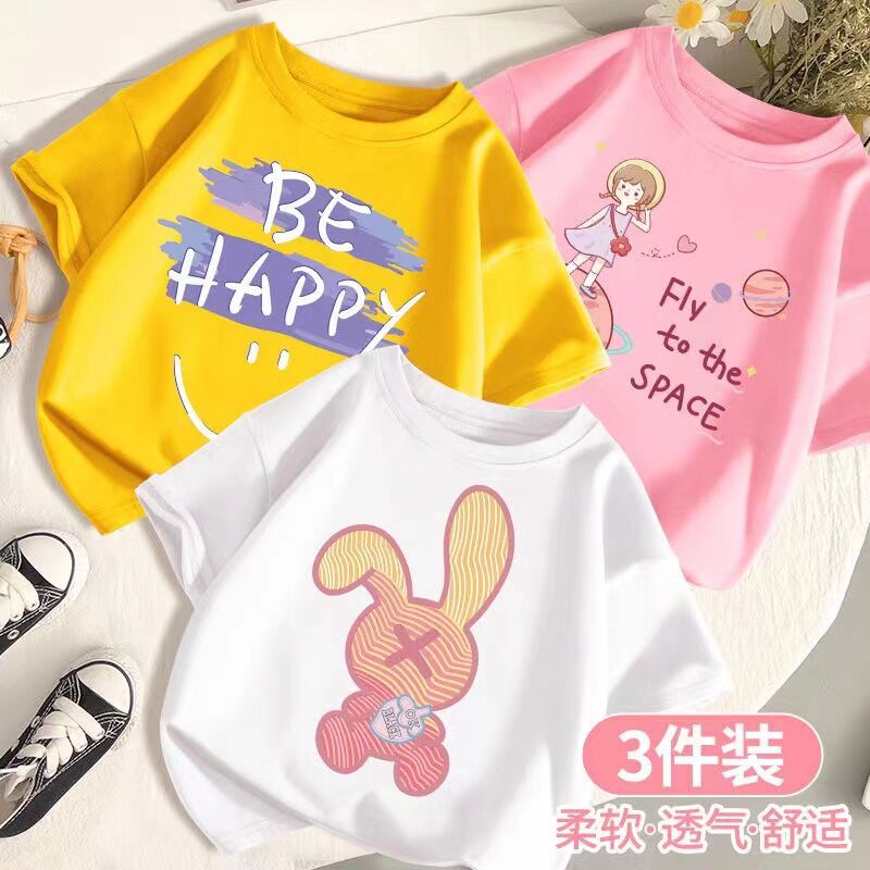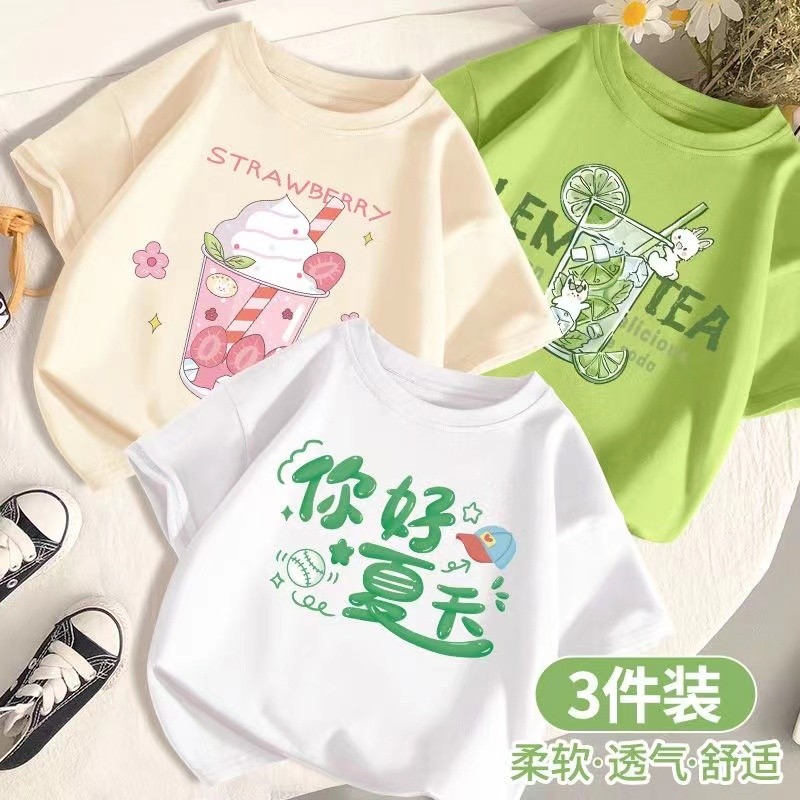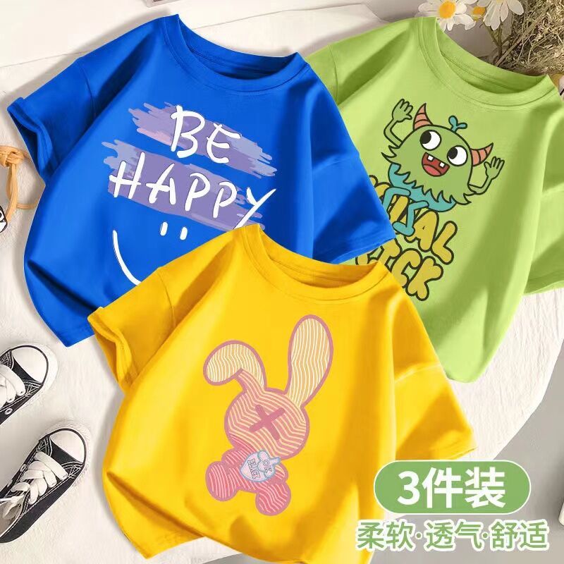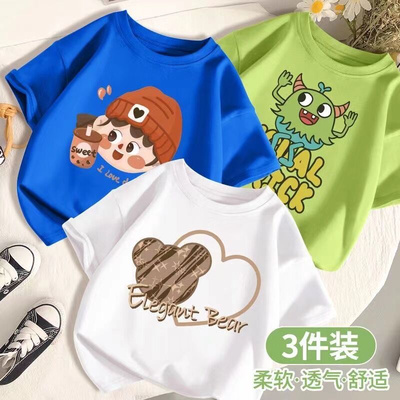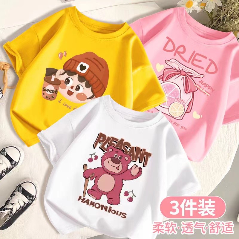 SARA 3pcs /set 1-14Y Round neck Children's Short Sleeve T-shirt Kids Children's Cartoon Printed Tshi