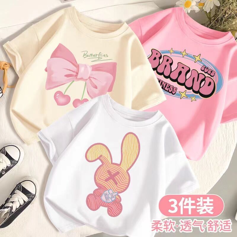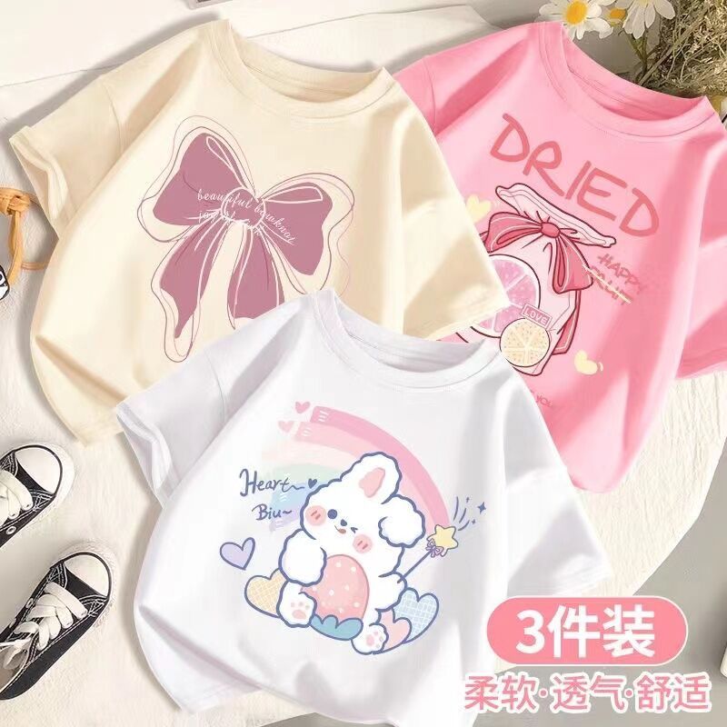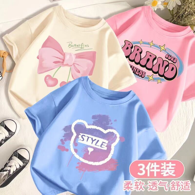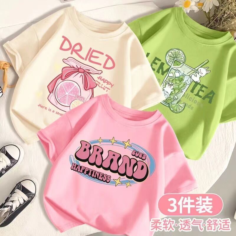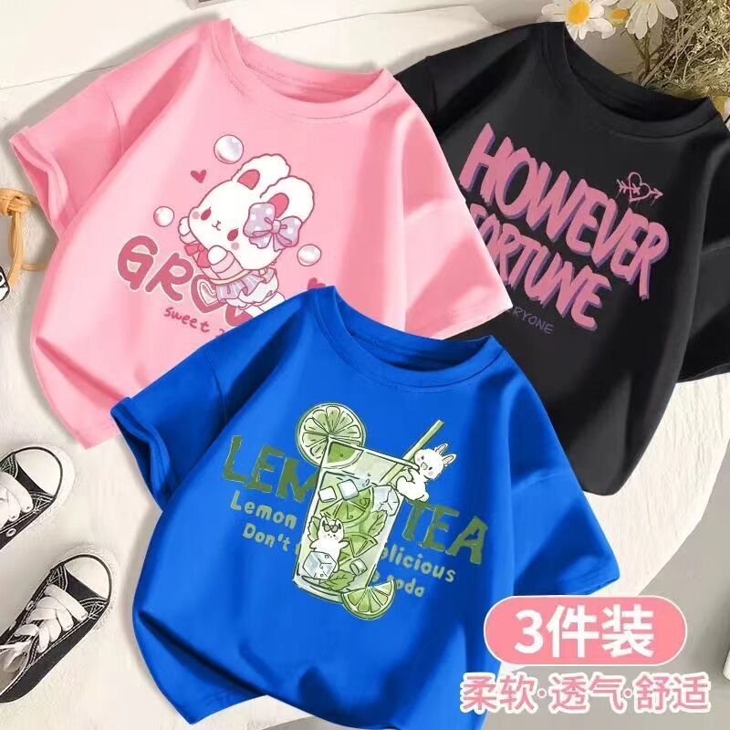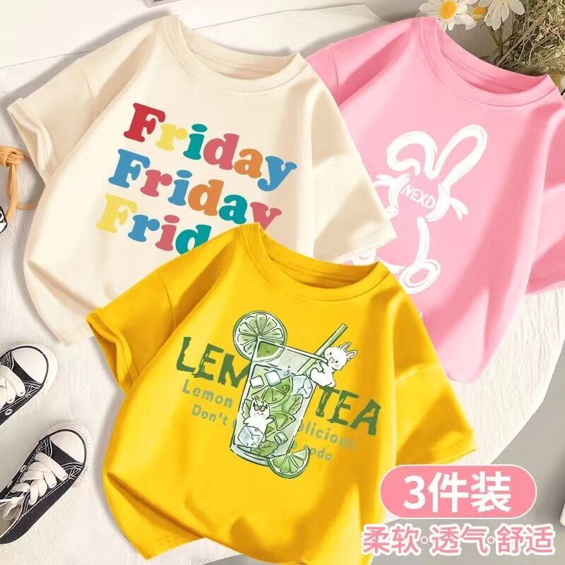 SARA 3pcs /set 1-14Y Round neck Children's Short Sleeve T-shirt Kids Children's Cartoon Printed Tshi
