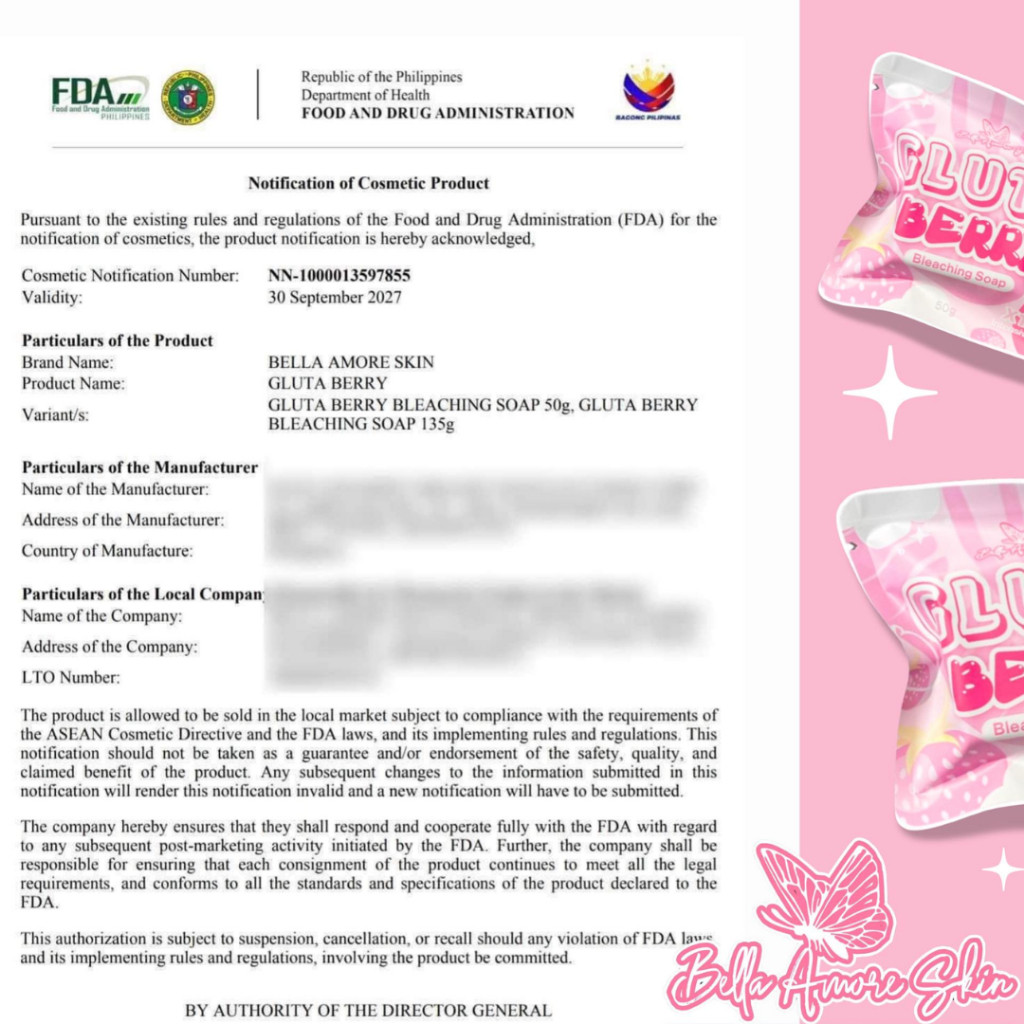 Bella Amore 50g Gluta Berry Bleaching Soap 10pcs Set | 100x Whitening Glutathione + Berry Soap