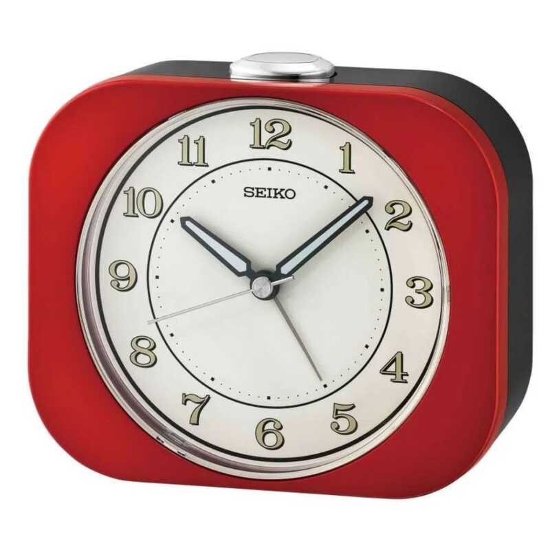 Seiko Qhe195r Alarm Clock Red Case White Dial Analog 11.3 F60