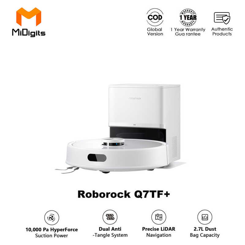 Roborock Q7tf+ Robot Vacuum Cleaner 10,000 Pa Dual Anti-Tangle System Precise Lidar Navigation 2.7L